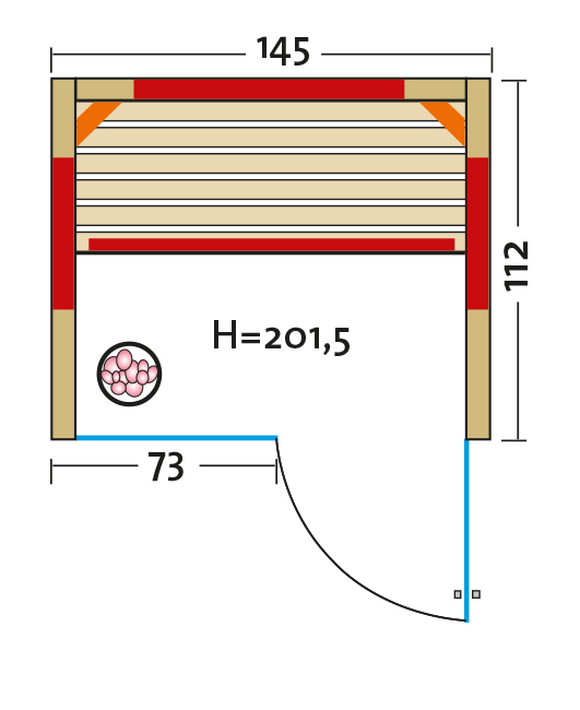 - Abmessung außen (BxTxH): ca. 145x112x201,5 cm