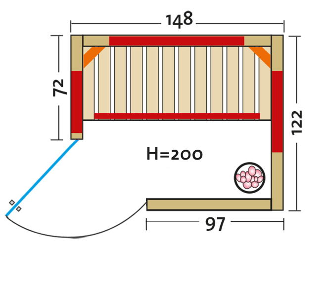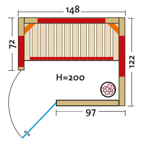 - Abmessung außen (BxTxH): ca. 148x121,5x200 cm