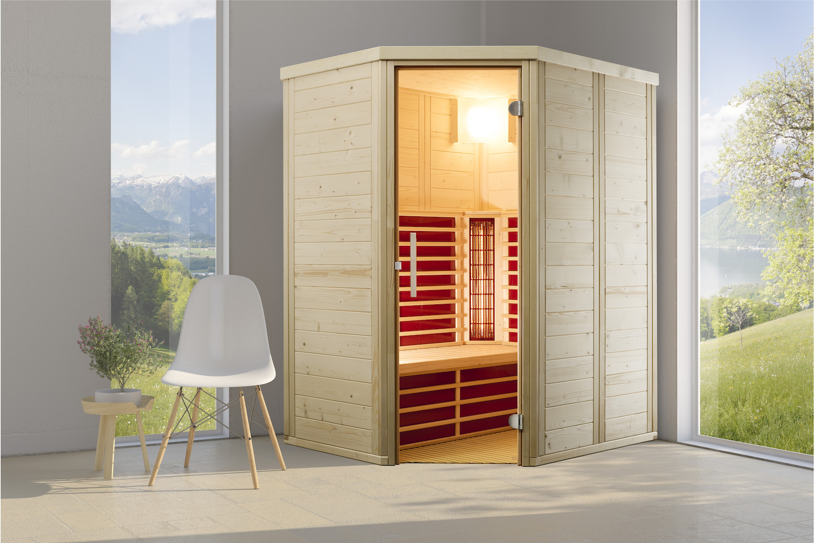 - Moderne Eckleuchte mit Saunalampe