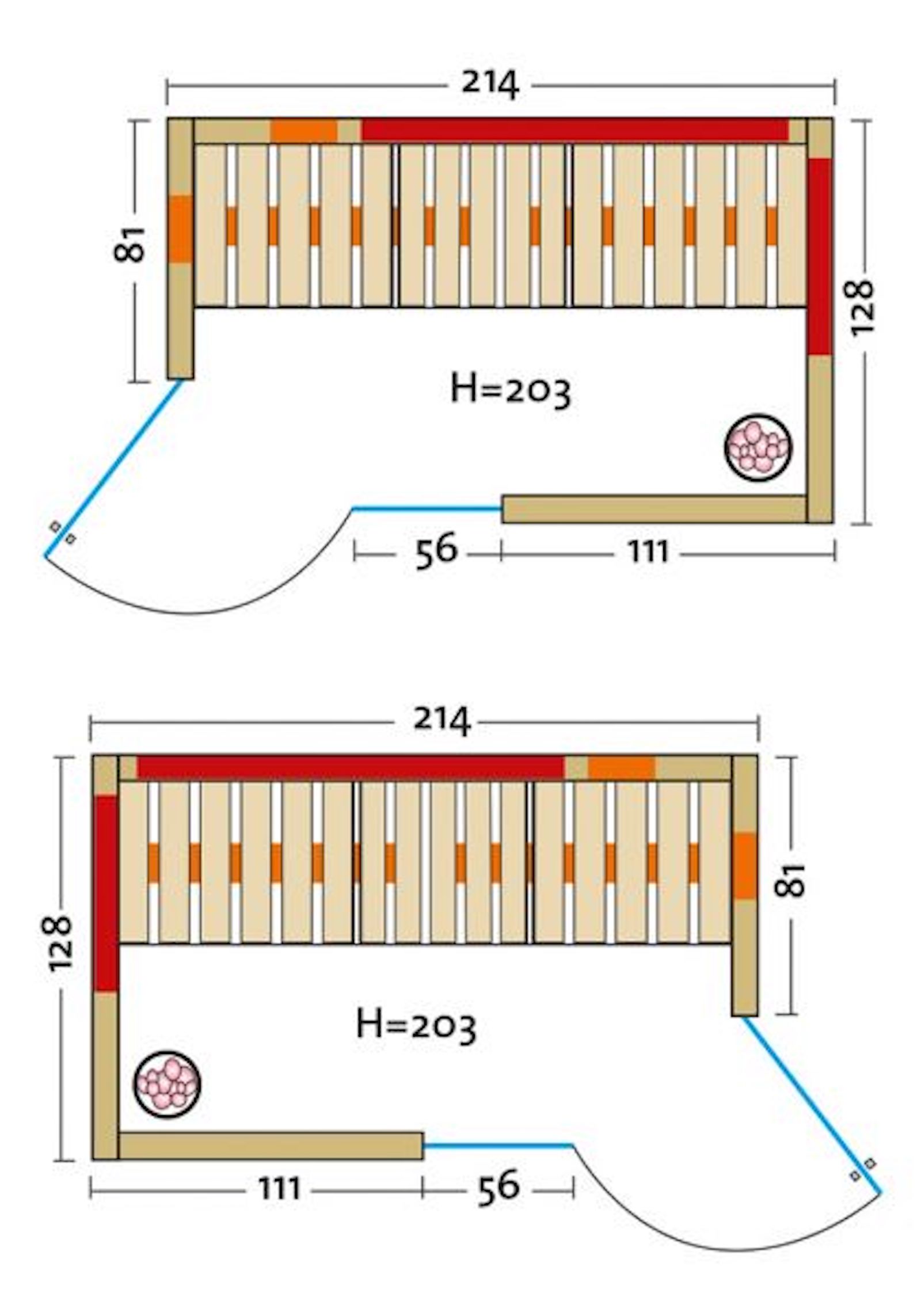 - 2x VITALlight-IPX4-Strahler unter der Sitzbank: (2x500 W, 230 V, regelbar über eine eigene Fernbedienung)