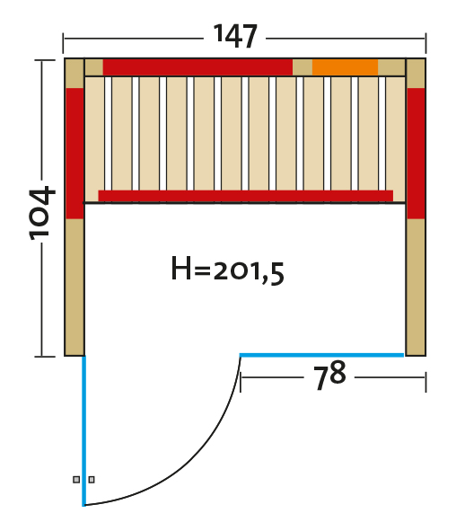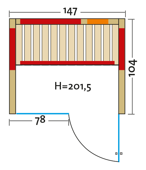- Abmessung außen (LxBxH): ca. 147x104x201,5 cm