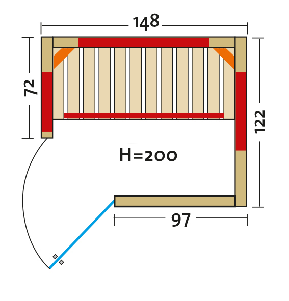 - Abmessung außen (LxBxH): ca. 148x121,5x200 cm