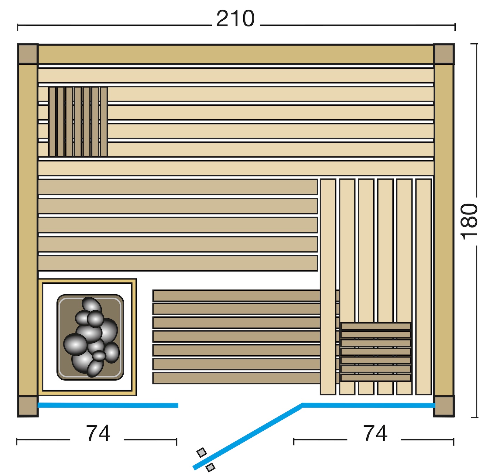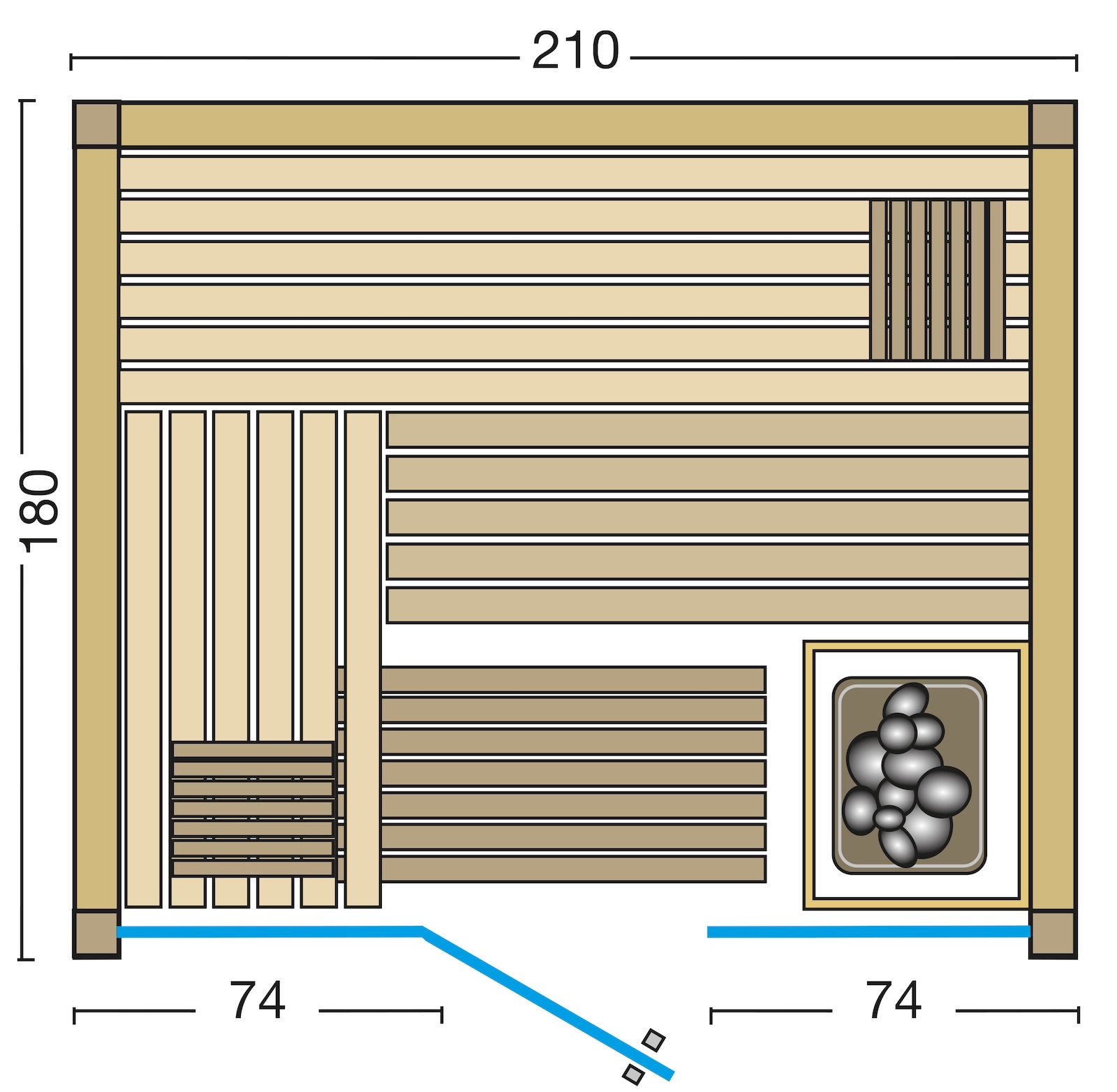Hinweis: Saunaofen und Steuerung sind nicht im Lieferumfang enthalten! (Optional erhältlich)