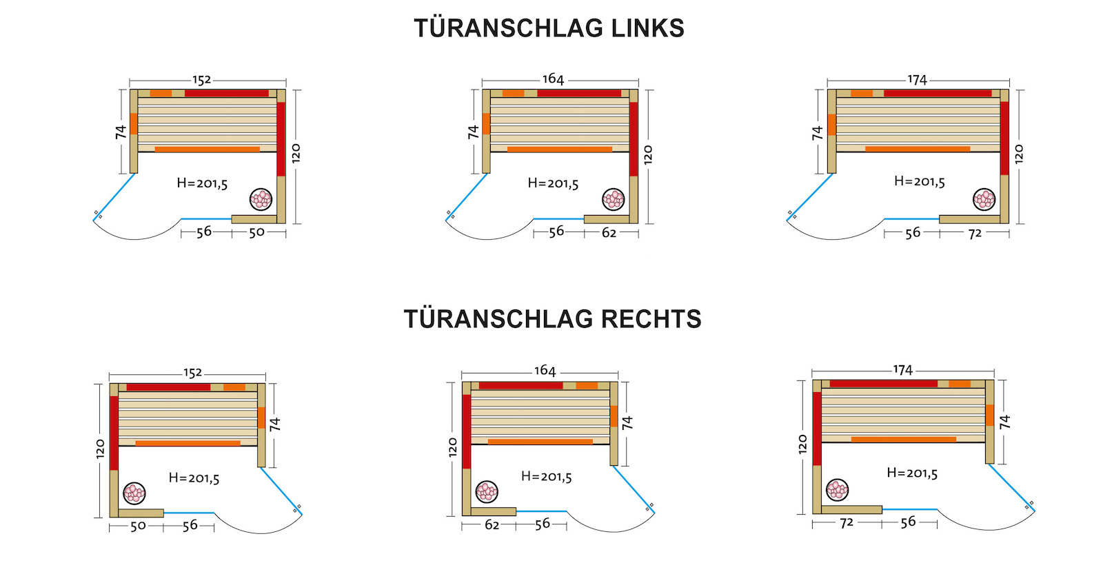 - Saunapaneele wahlweise in Ahorn, Eiche alt, Hemlock und Zirbe