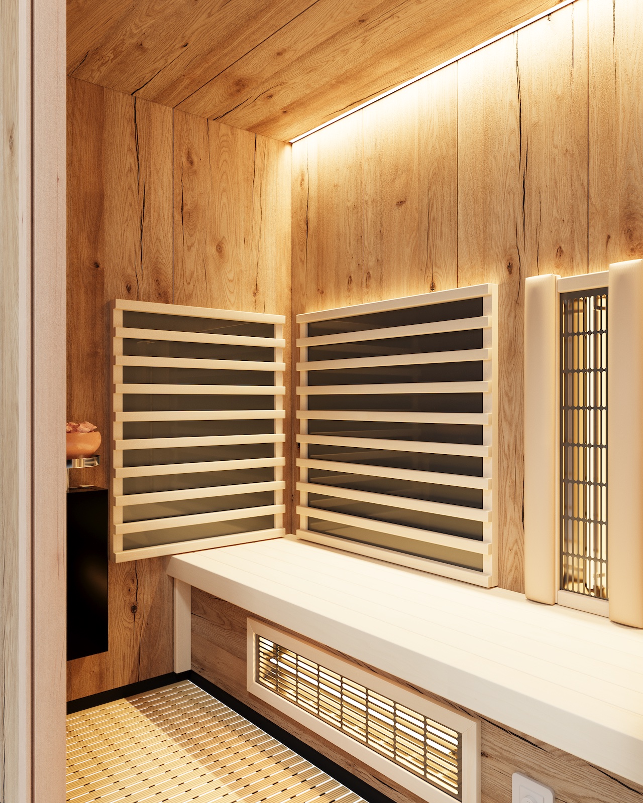 - 1 VITALlight-Infrarotstrahler unter der Sitzbank (1x 350 W, 230 V)
