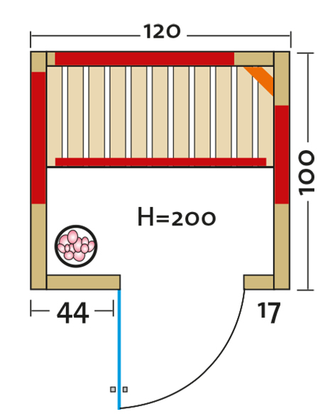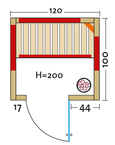 - Abmessung außen (BxTxH): ca. 120x100x195 cm