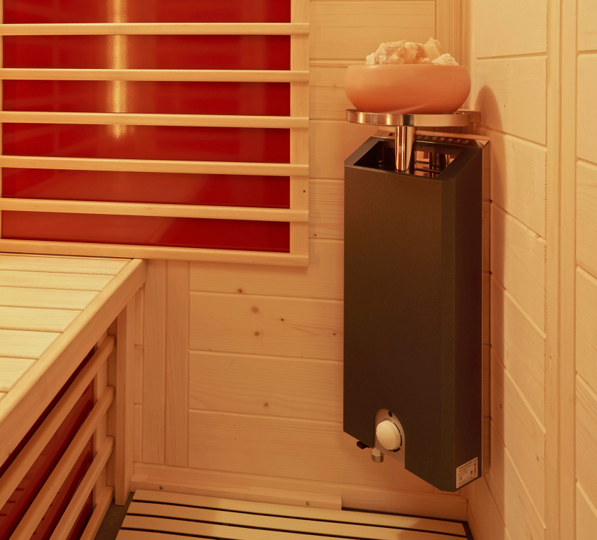 Die TrioSol-Infrarotkabine vereint drei verschiedene Elemente und sorgt für ein absolutes Wohlfühlambiente. Die Flächenheizung spendet behagliche Wärme. Der VITALlight-Strahler bietet ein ähnliches ABC-Infrarotspektrum wie die Sonne und verwöhnt Haut, Blutgefäße und Muskulatur mit einer intensiven, punktuellen Bestrahlung. Für salzhaltigen Wasserdampf in der Luft sorgt die exklusive Sole-Therme. Mit dem ausgeklügelten Steuersystem können Sie alle Module stufenlos und individuell dosieren.