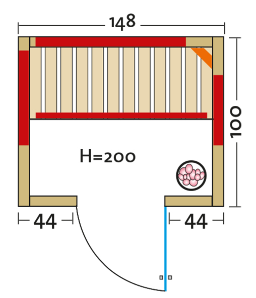 - Abmessung außen (BxTxH): ca. 148x100x195 cm