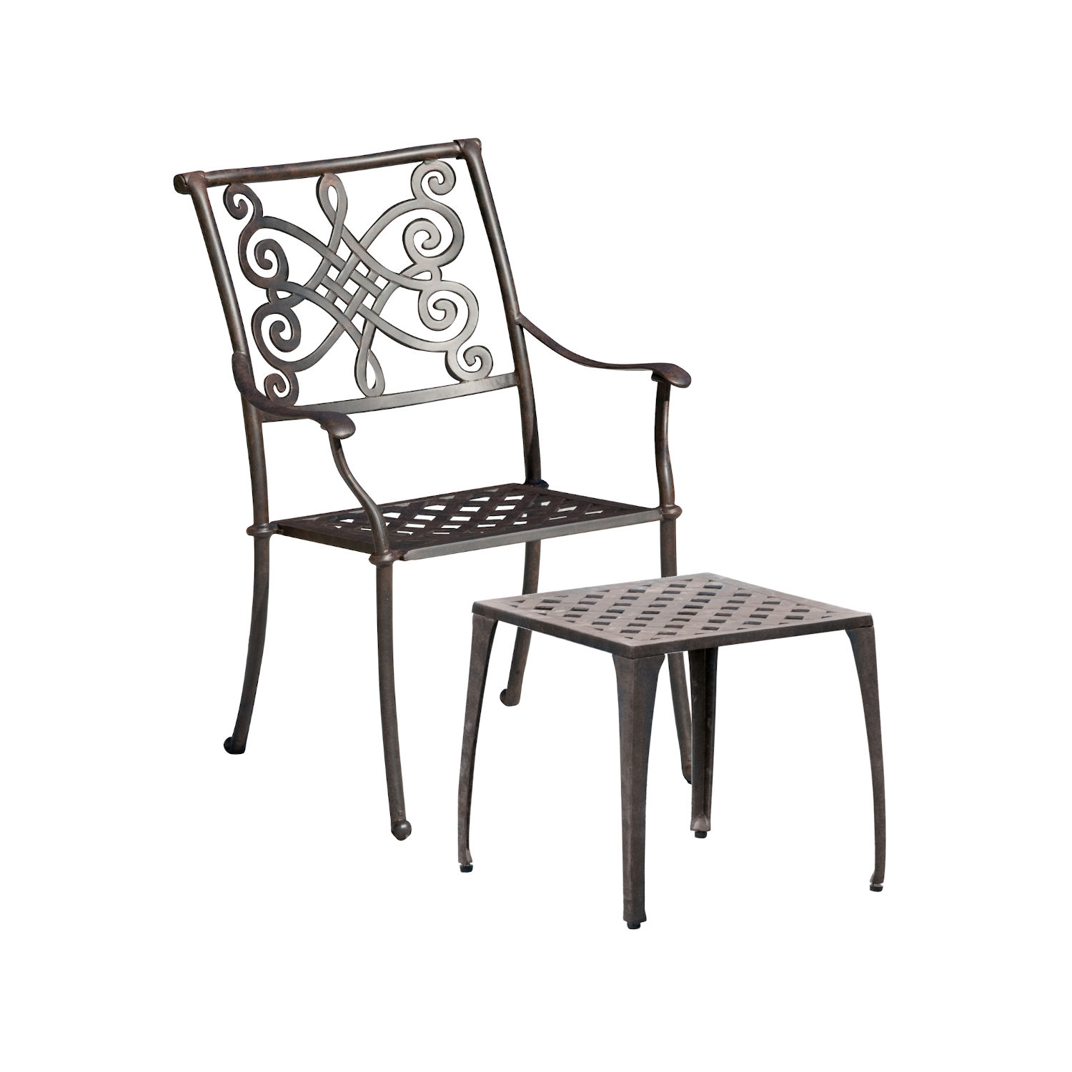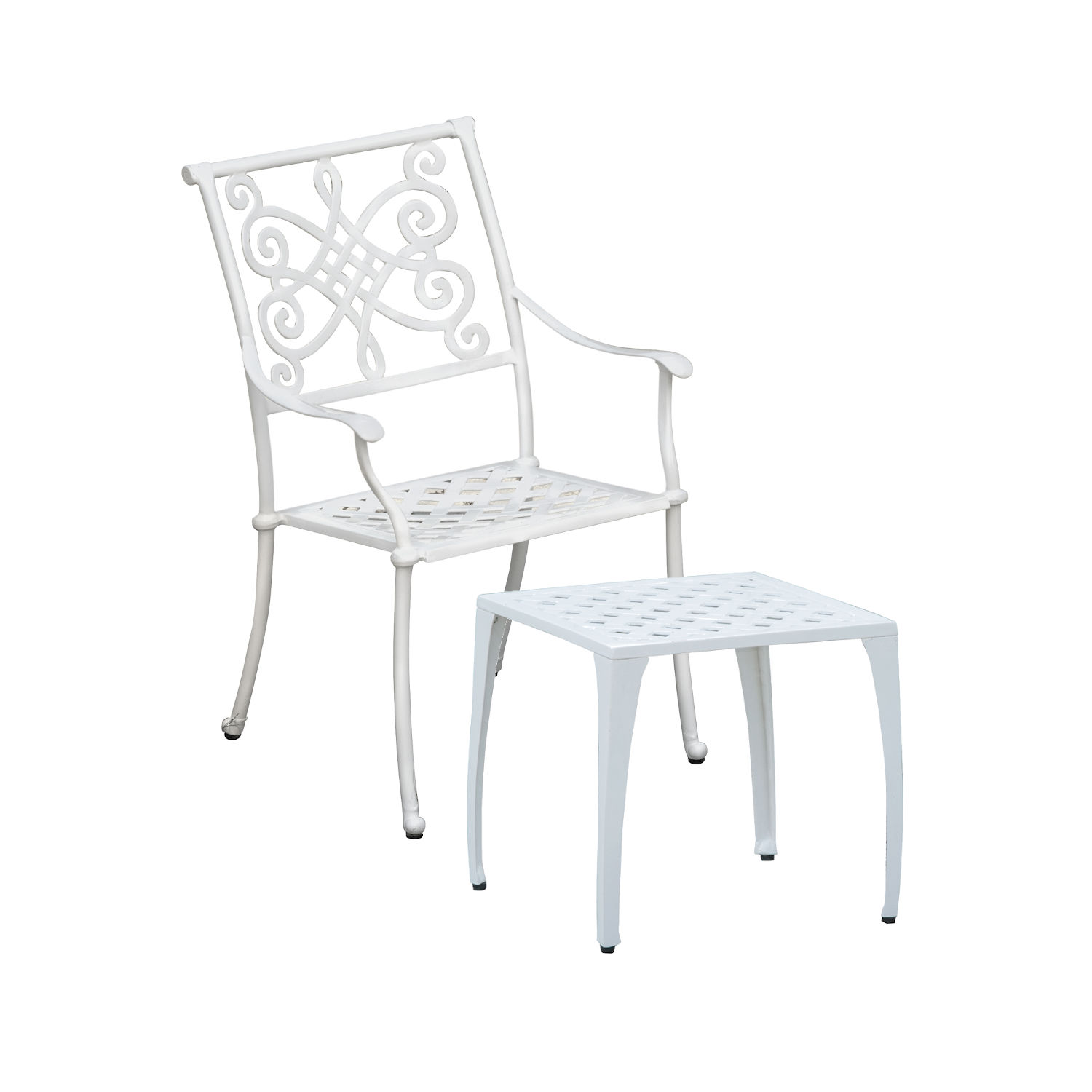 - Stapelstuhl und Fußhocker im Set - aus hochwertigem Alu-Guss - in weiß oder bronze erhältlich - stapelbar - einfache Reinigung - witterungsbeständig