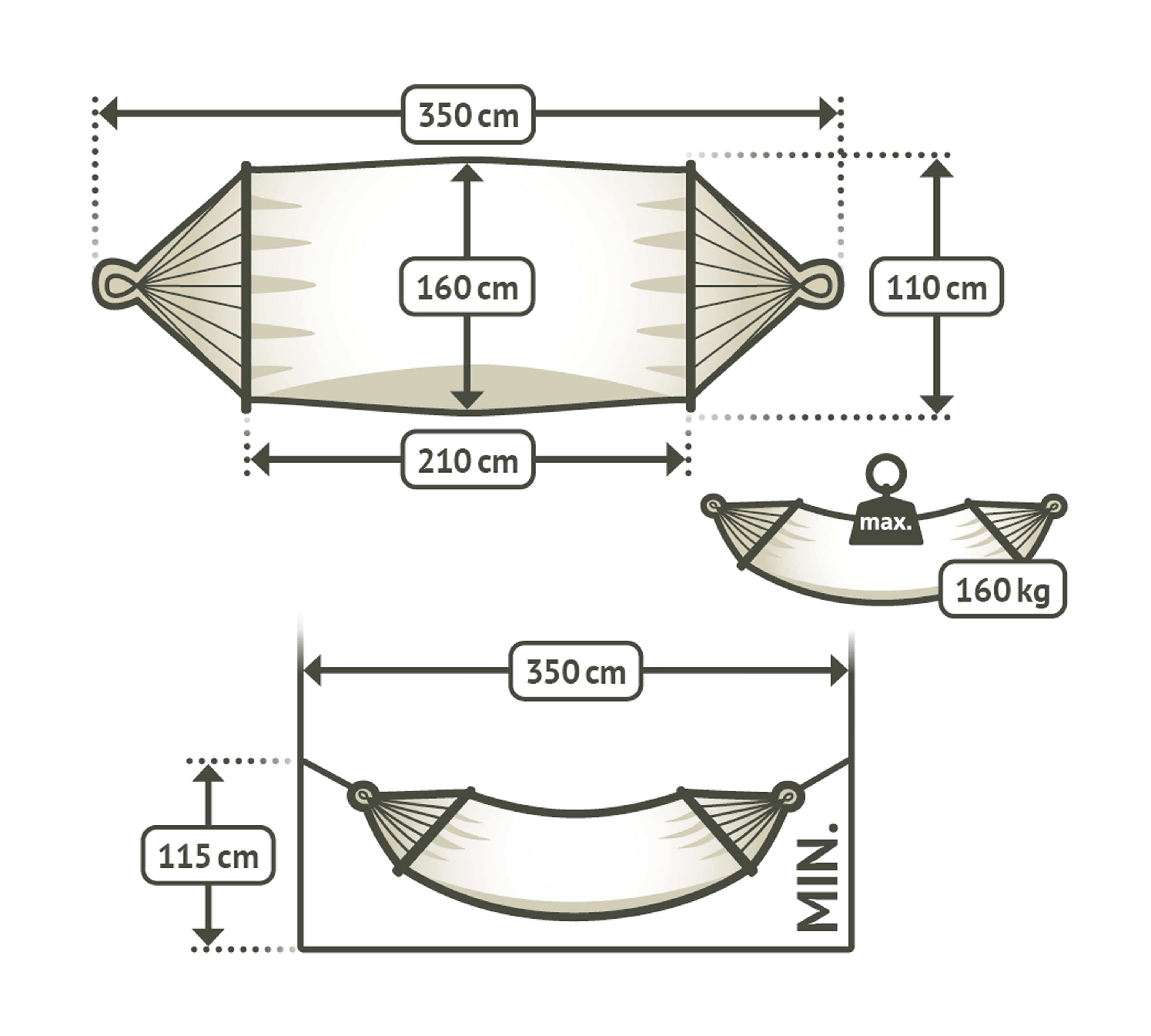- Gesamtlänge der Hängematte: ca. 350 cm