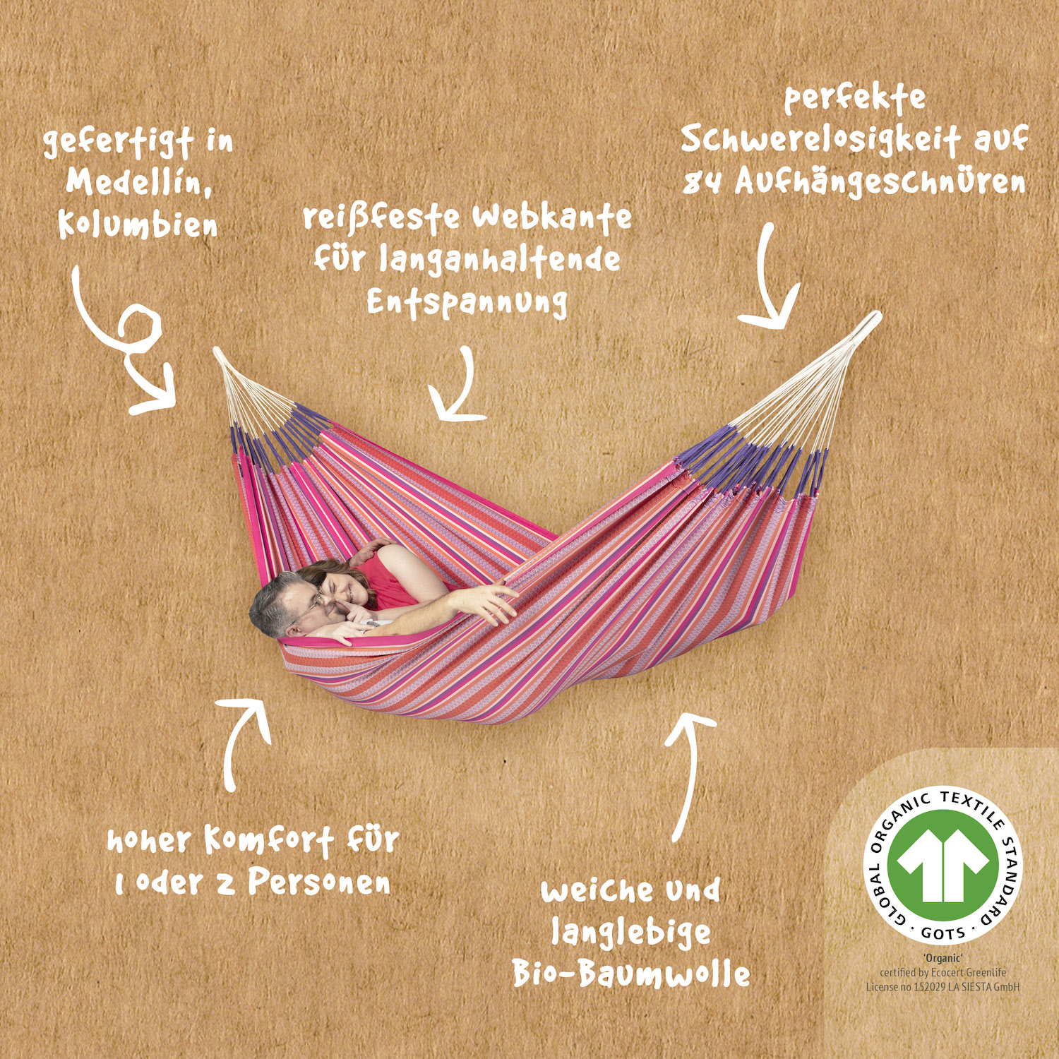 Produktinformationen "La Siesta Hängematte MODESTA flamingo pink aus Bio-Baumwolle Doppelhängematte"