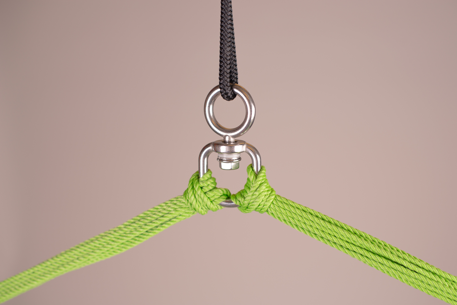 Dank eines speziellen Drehwirbels können Sie sich in dem Hängestuhl sicher und bequem um 360° drehen, ohne dass sich die Schnüre der Aufhängung verdrehen. Die Vielzahl an Aufhängeschnüren sorgt für die optimale Gewichtsverteilung