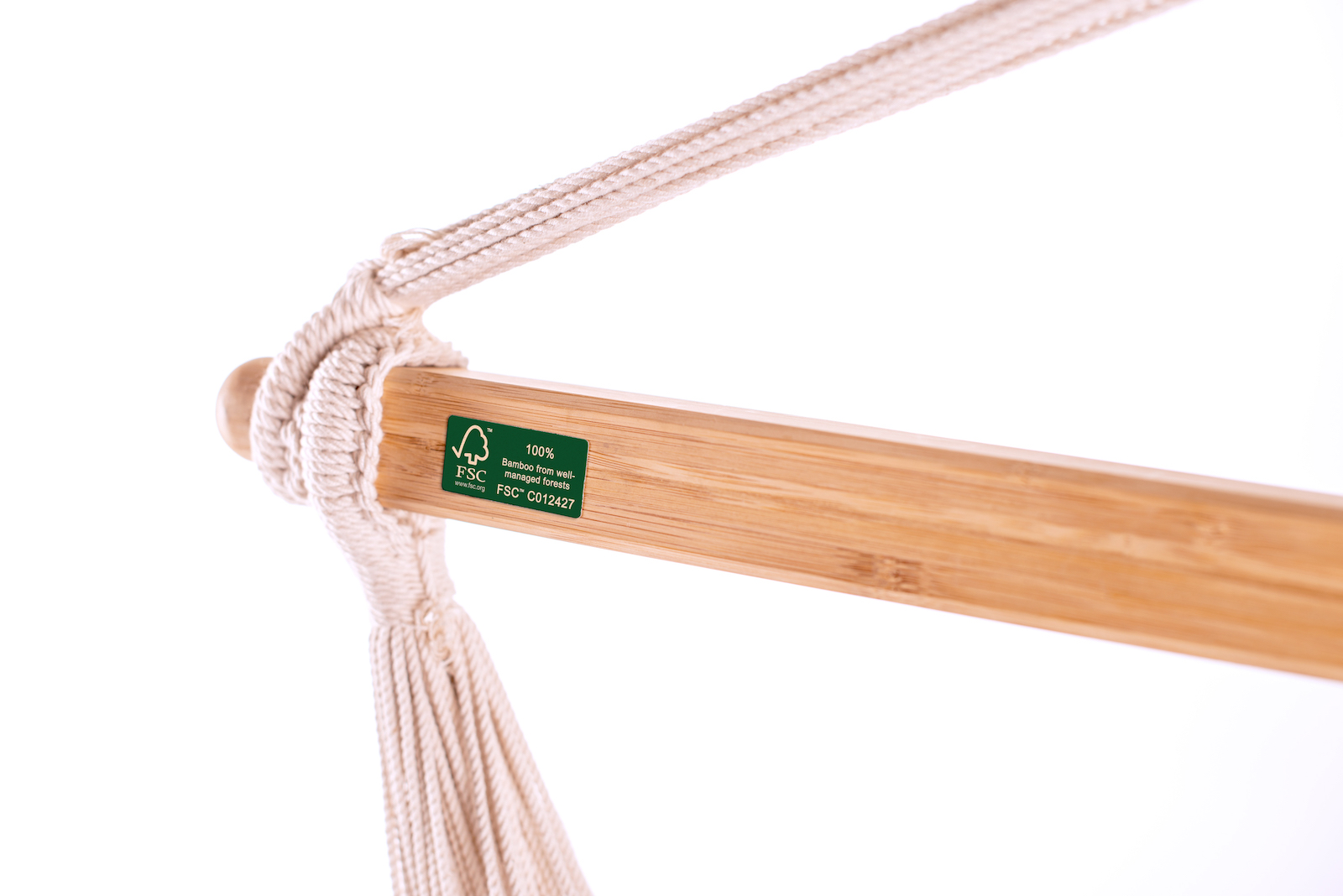 Er bietet hohen Liegekomfort und ist aus hochwertiger Bio-Baumwolle hergestellt, was pflegeleicht ist und für ein besonders angenehmes Hautgefühl sorgt. Durch verstärkte Webkanten ist er besonders reißfest. Der Spreizstab ist aus hochwertigem Bambusholz hergestellt und setzt ein optisches Highlight.