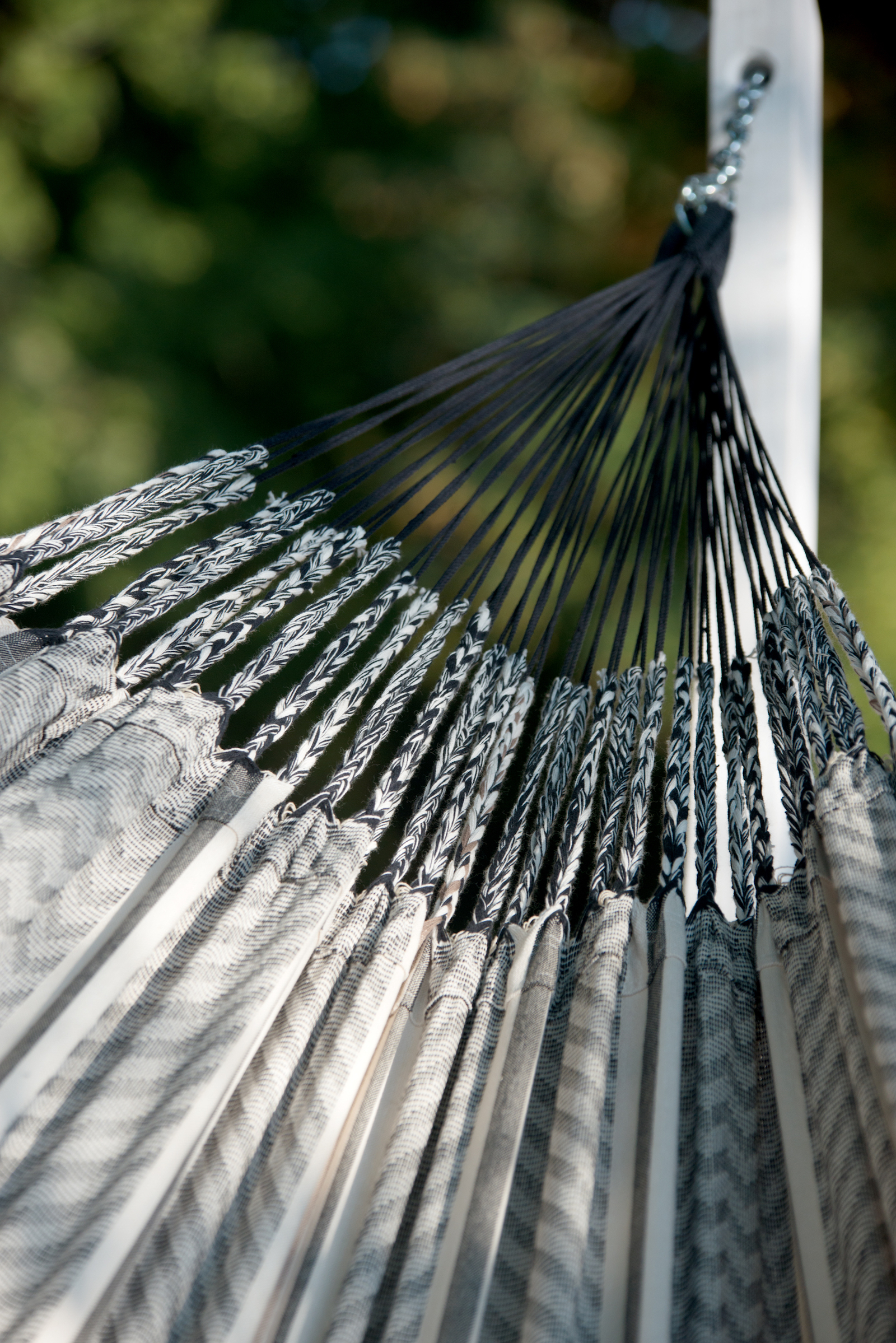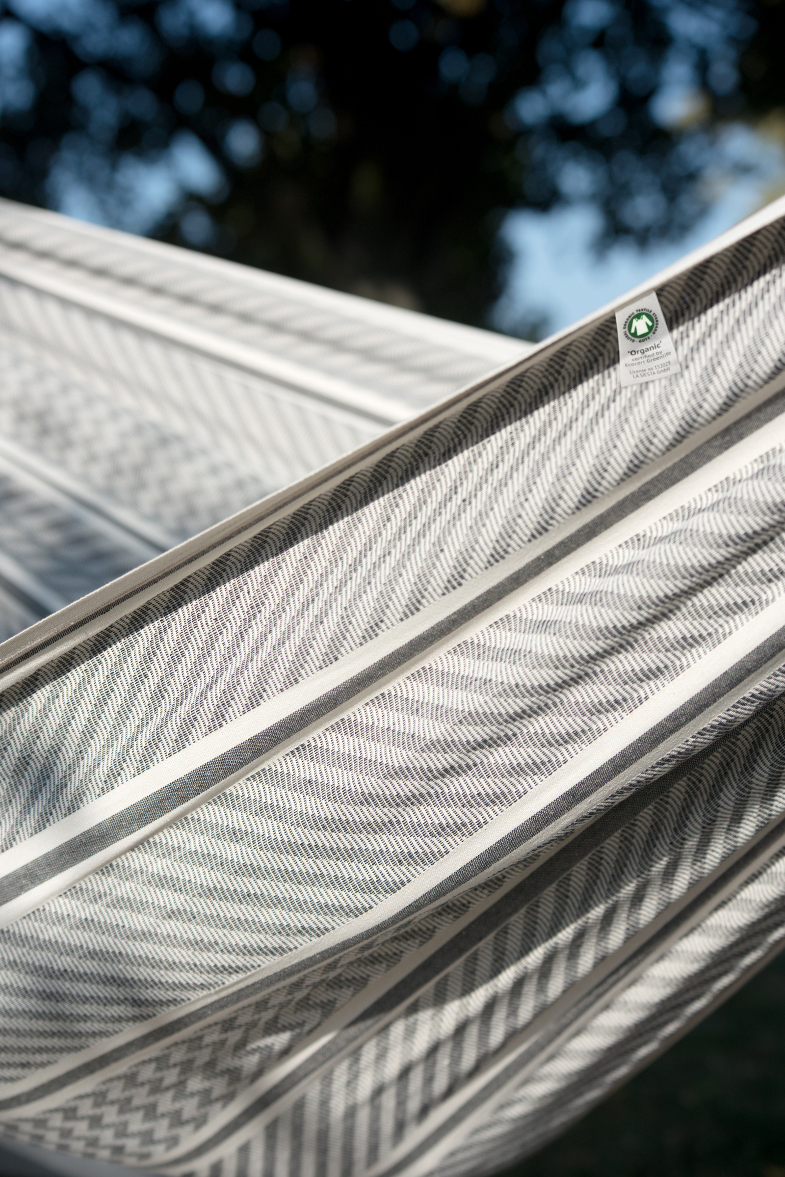 Sie bietet hohen Liegekomfort und ist durch ihre exklusive Webart ein besonderer Hingucker. Sie ist aus hochwertiger Bio-Baumwolle gefertigt, was für ein angenehmes Hautgefühl sorgt und die Hängematte besonders pflegeleicht macht. Durch verstärkte Webkanten ist sie besonders reißfest.