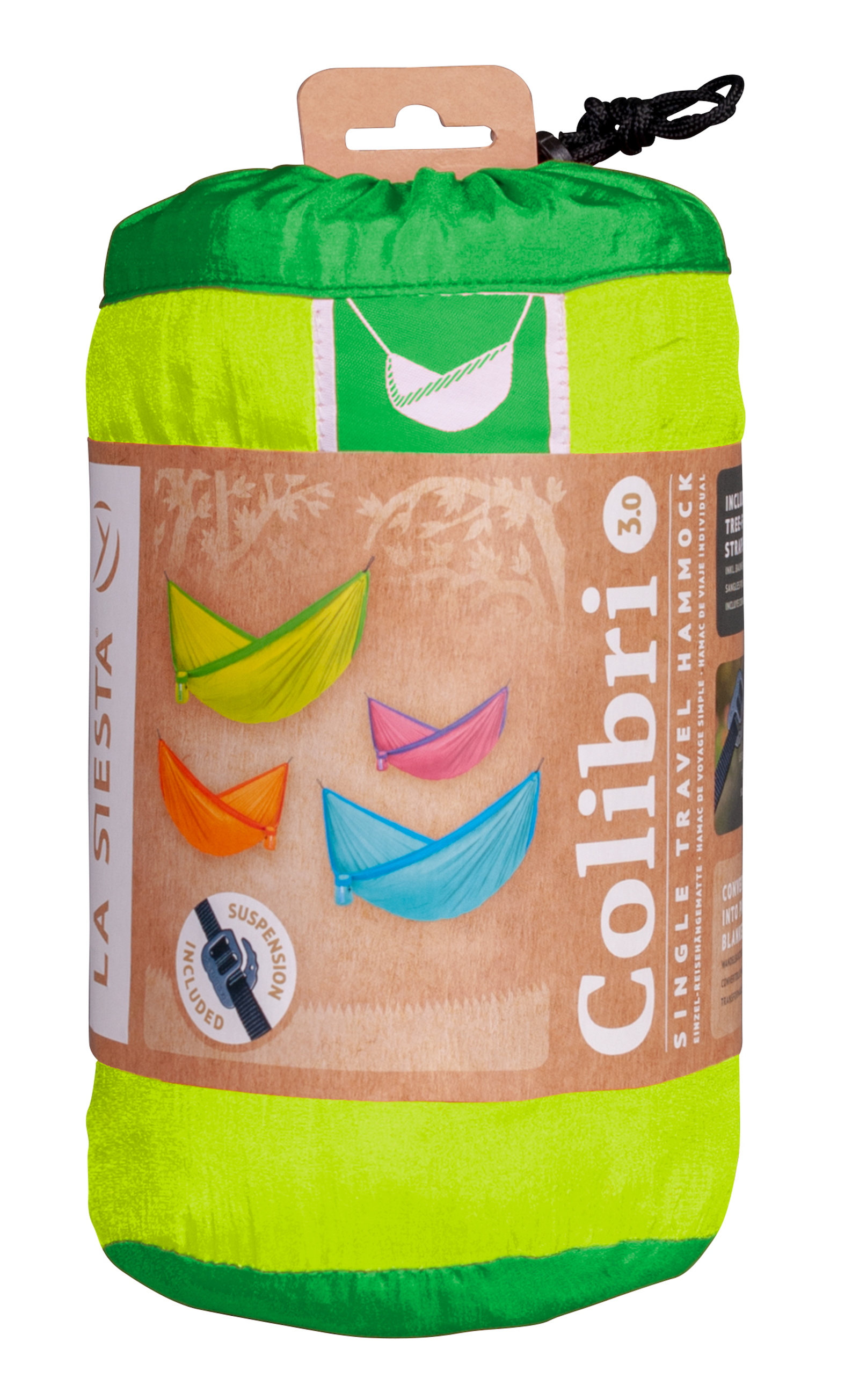 1x La Siesta Doppel-Reisehängematte COLIBRI 3.0 in palm inkl. Befestigungsmaterial.
