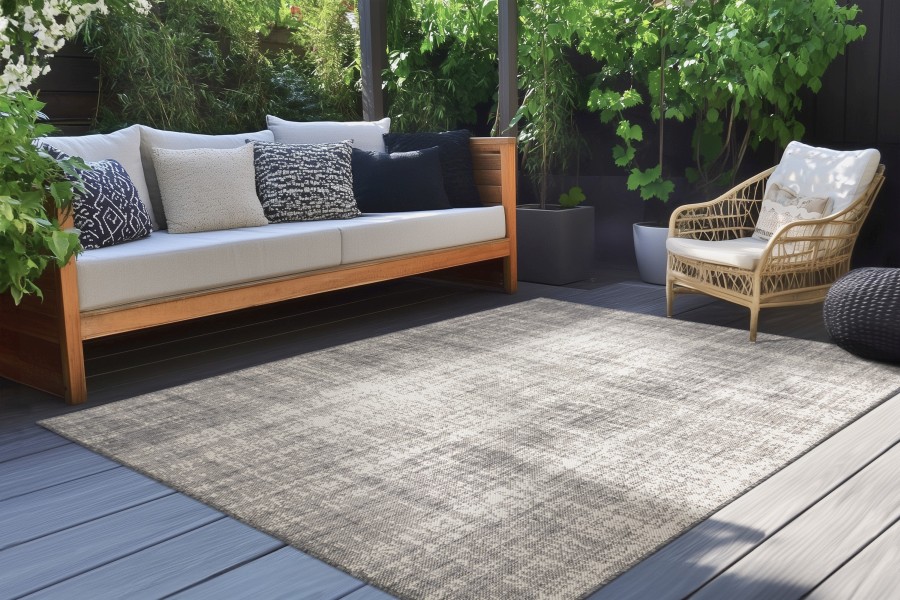 Verleihen Sie Ihrem Wohnraum, Balkon oder Ihrer Terrasse einen modernen Look mit diesem stilvollen Teppich in elegantem Silber. Dank seiner robusten Verarbeitung und der zeitlosen Farbgebung fügt er sich harmonisch in nahezu jedes Ambiente ein – ob Wohnzimmer, Flur, Küche oder Outdoor-Bereich.