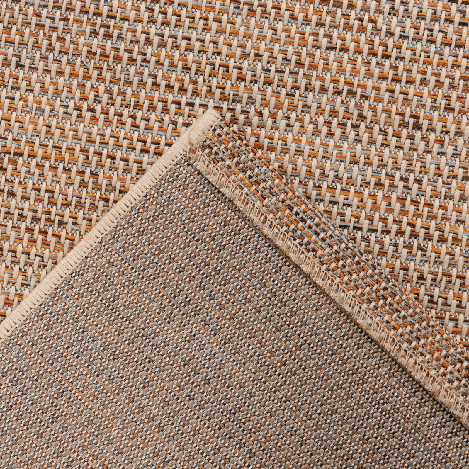 Setzen Sie natürliche Akzente mit diesem modernen Teppich im stilvollen Flechtdesign. Die fein abgestimmte Farbkomposition aus dezenten Naturtönen und frischen Akzenten verleiht Wohn- und Außenbereichen eine lebendige, zugleich harmonische Ausstrahlung und fügt sich mühelos in unterschiedliche Einrichtungsstile ein – von modern bis mediterran.
