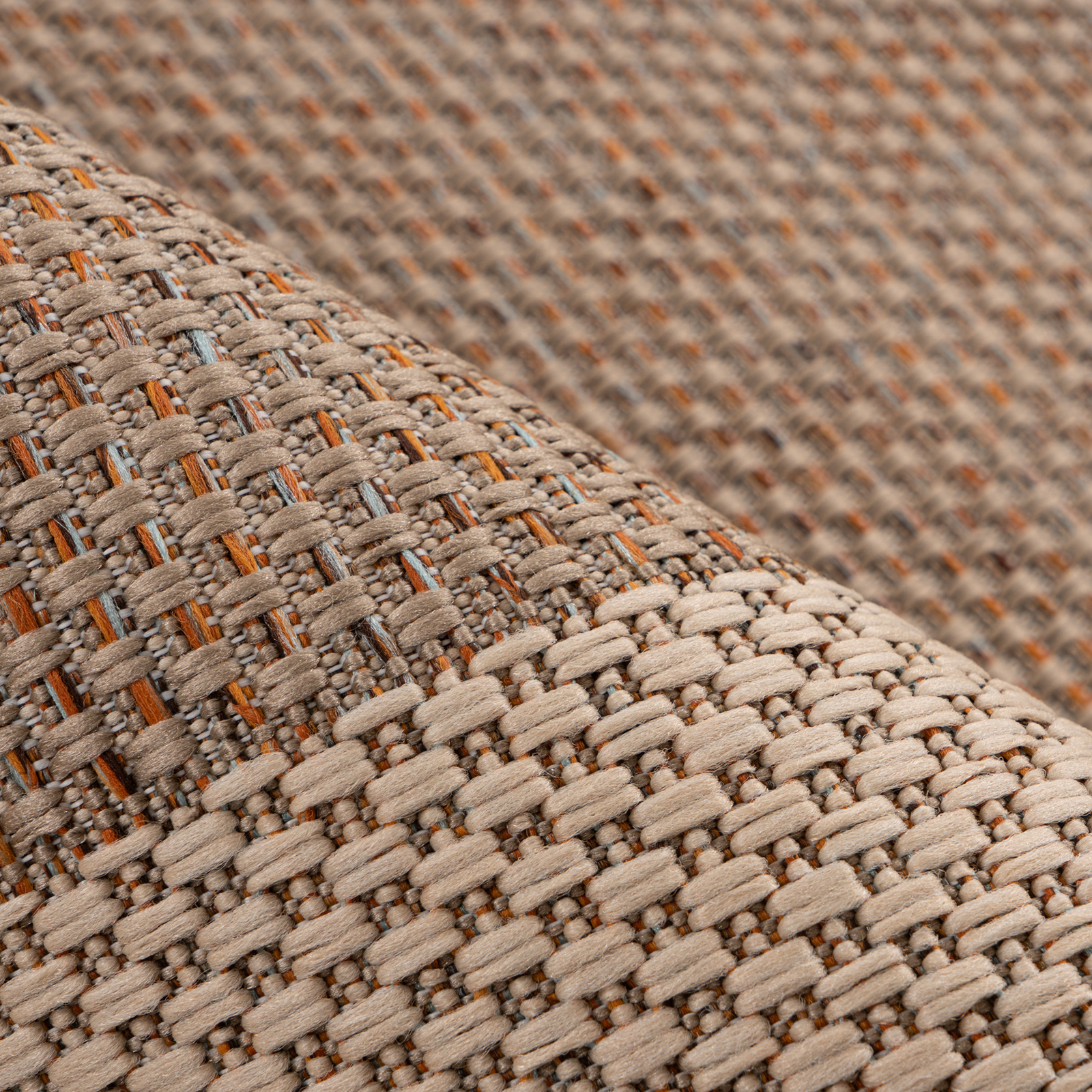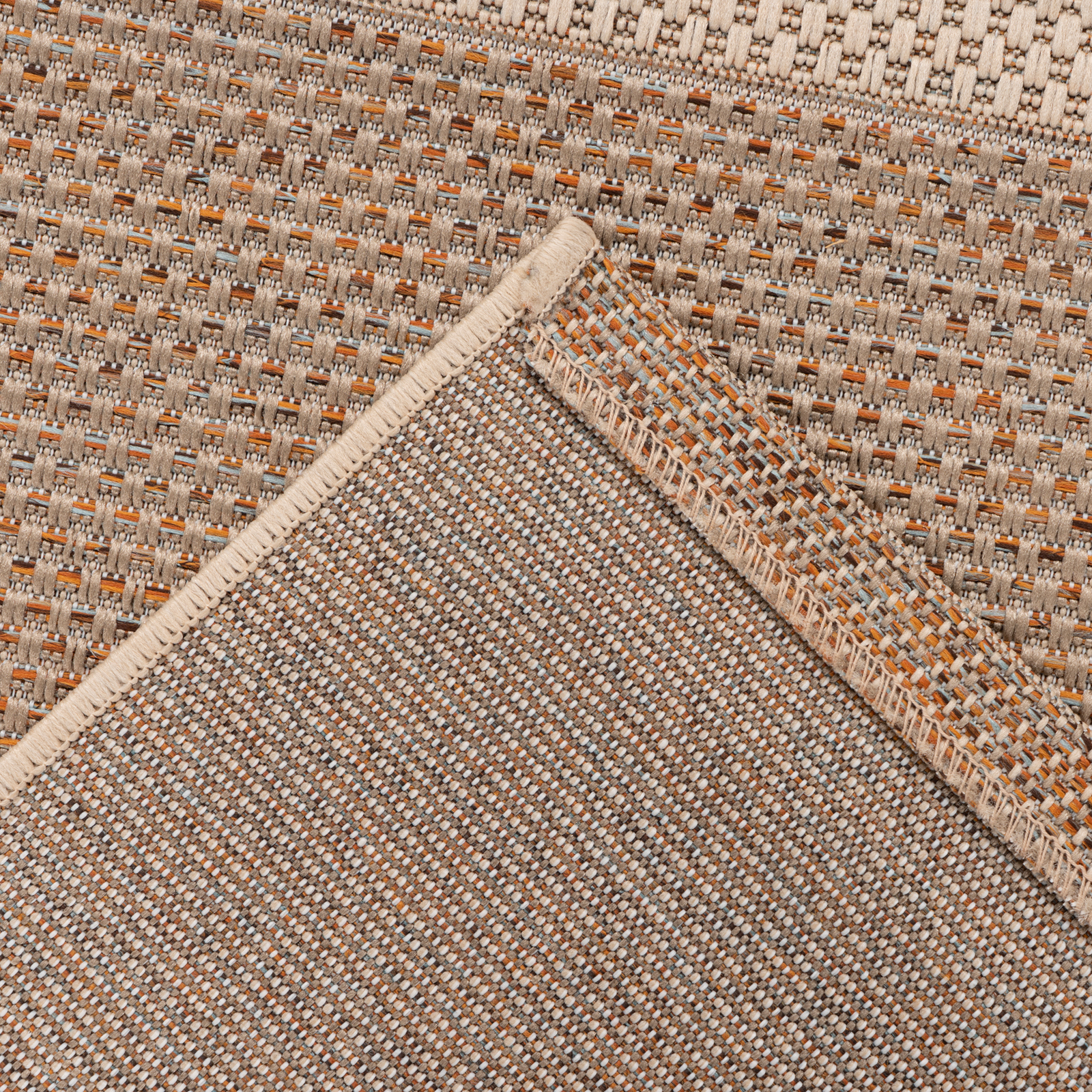 Setzen Sie natürliche Akzente mit diesem modernen Teppich im stilvollen Flechtdesign. Die fein abgestimmte Farbkomposition aus dezenten Naturtönen und frischen Akzenten verleiht Wohn- und Außenbereichen eine lebendige, zugleich harmonische Ausstrahlung und fügt sich mühelos in unterschiedliche Einrichtungsstile ein – von modern bis mediterran.