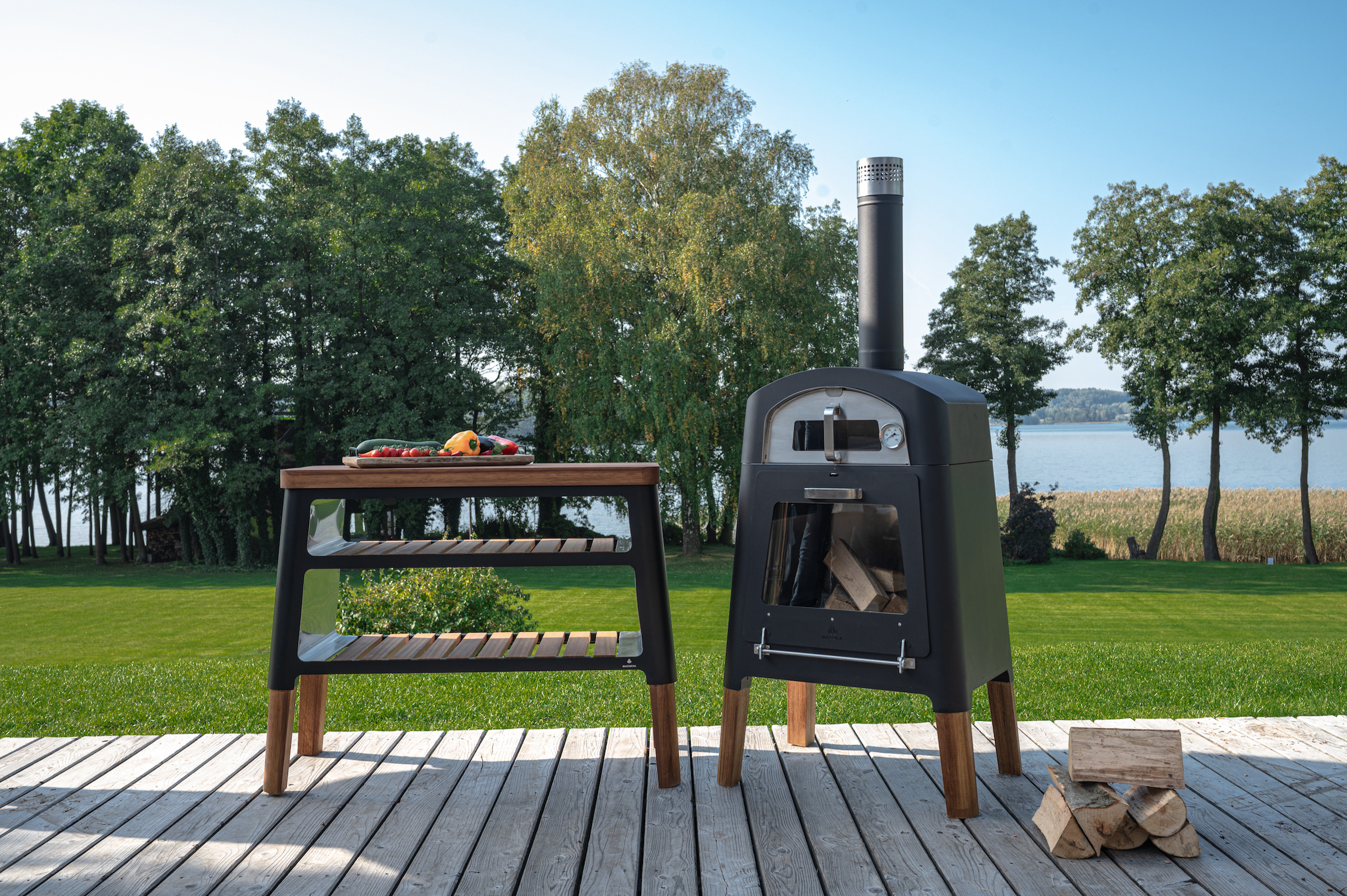 Die modernisierte Klassik, an die das Retro-Design erinnert, ist speziell für Liebhaber origineller und funktioneller Lösungen. Der Kamin ist mit einem Grillbrettmodul zum Backen ausgestattet, was ermöglicht, auf traditionelle Art und Weise unter anderem Pizza und Brot zuzubereiten. Ein zusätzlicher Vorteil ist die multifunktionale Feuerstelle, die unabhängig als Gartenfeuerstelle genutzt werden kann. Der modulare, vielseitige und moderne Holzofen mit innovativen Heiz- und Kochlösungen verbindet zwei Elemente des Kochens – Tradition und Funktionalität – und schafft ein Produkt mit traditionellem Aussehen, das sicherlich zu den meisten Außenbereichen passt.