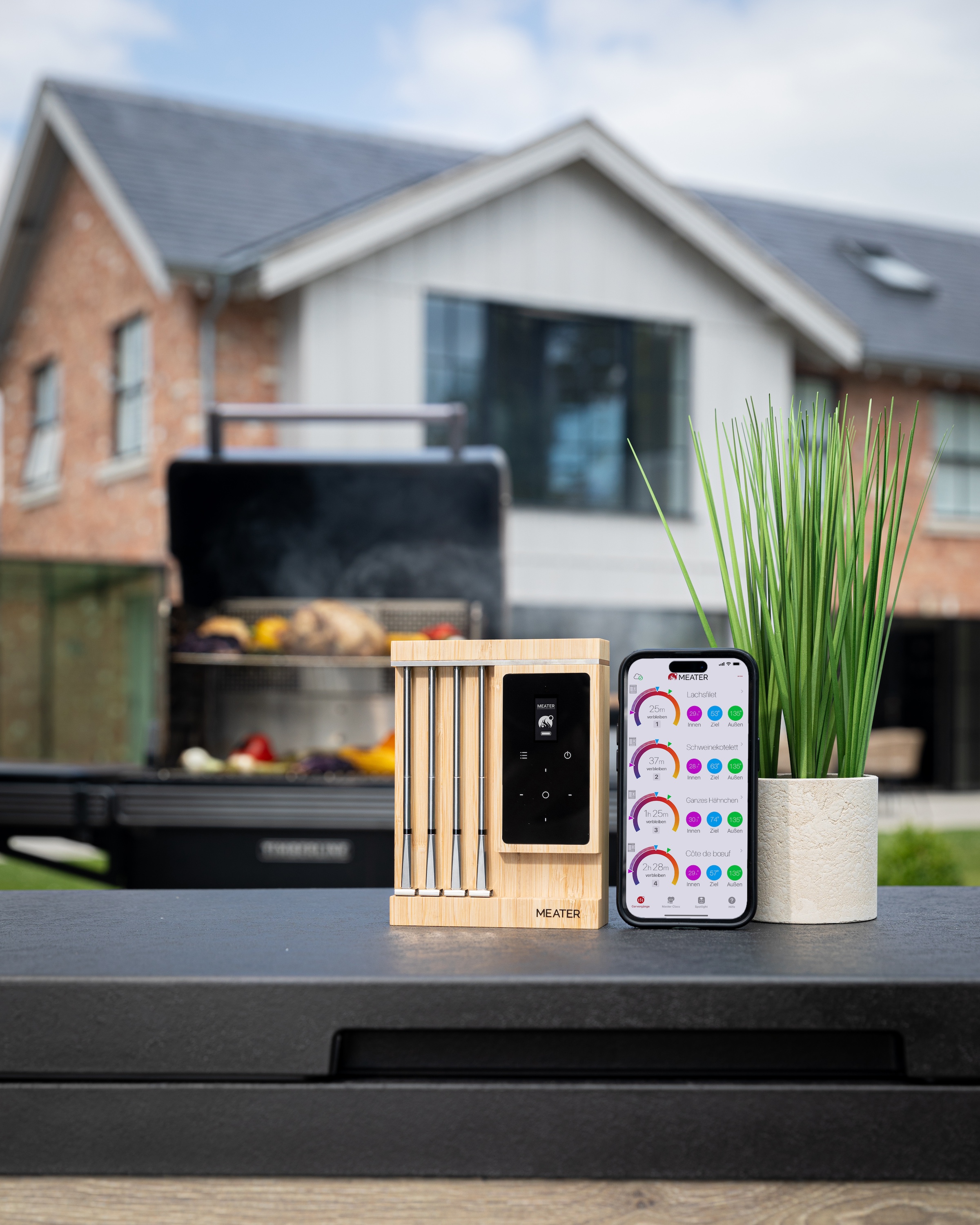 - Verbindet sich direkt mit der MEATER Cloud für eine Überwachung aus jeder Entfernung
