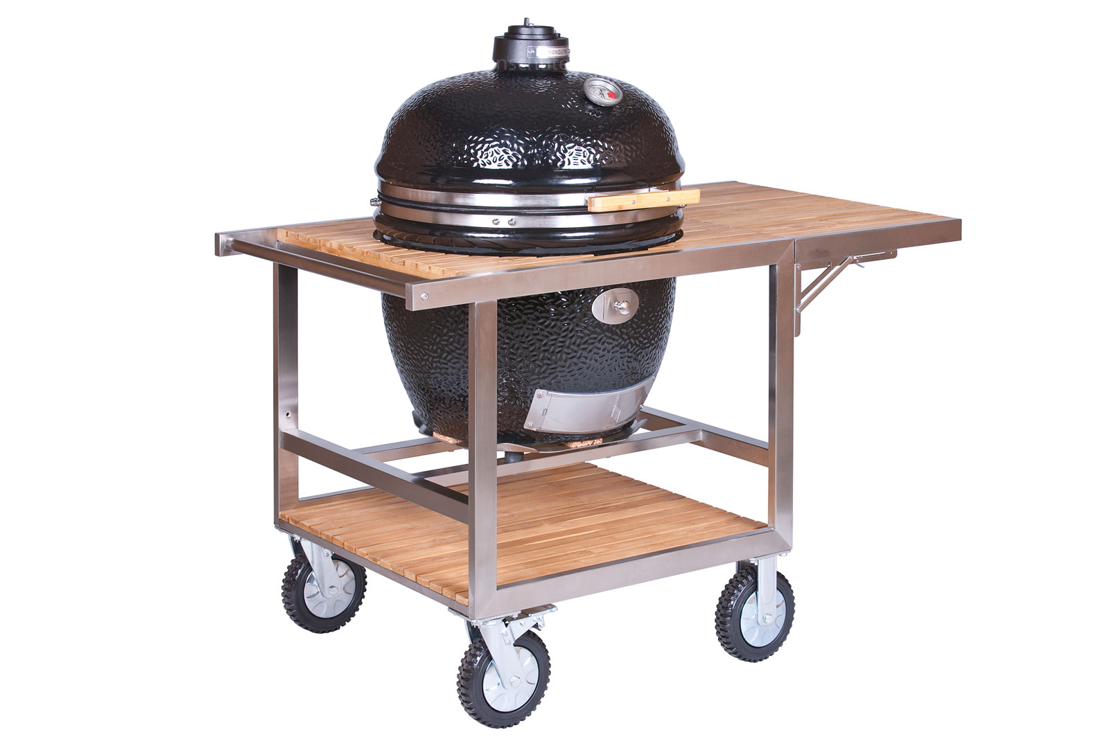- 4 große Räder (Ø 20 cm), zwei davon lenk- und feststellbar