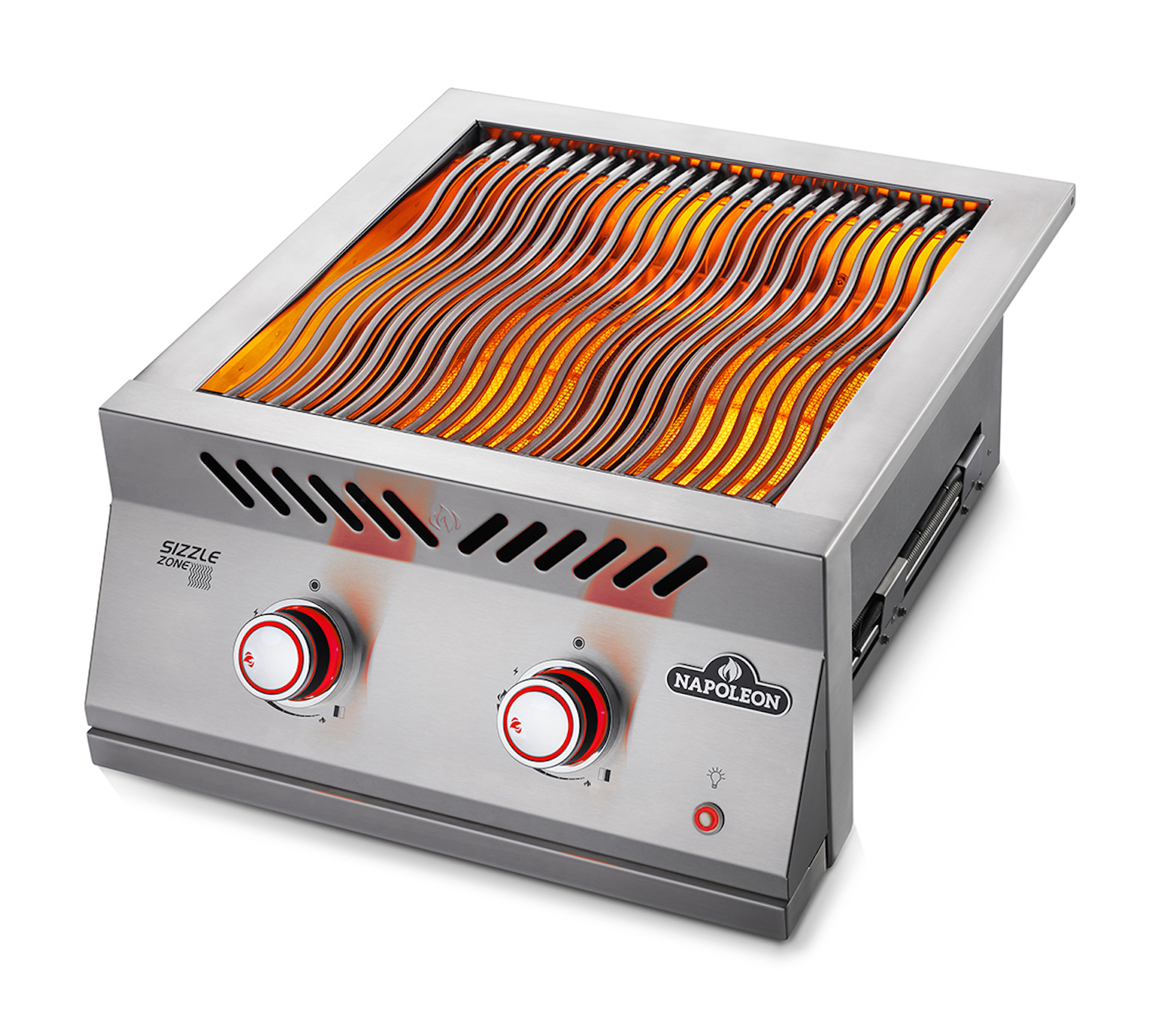 Die große Napoleon SIZZLE ZONE für das perfekte Branding. Erweitern Sie Ihren Napoleon Einbau-Gasgrill mit der leistungsstarken SIZZLE ZONE. Mit diesem Hochtemperaturbrenner, der bis zu 800°C erreicht, heizen Sie Ihren Steaks ordentlich ein und schaffen unverwechselbare Röstaromen. Optisch passt sich dieses Modul perfekt an die 700er Serie an. Dank der Safety Glow Beleuchtung ist dieses Modul ein echtes Highlight in Ihrer Einbauküche. Die SIZZLE ZONE wird als Einbauelement in die Aussenküche integriert.