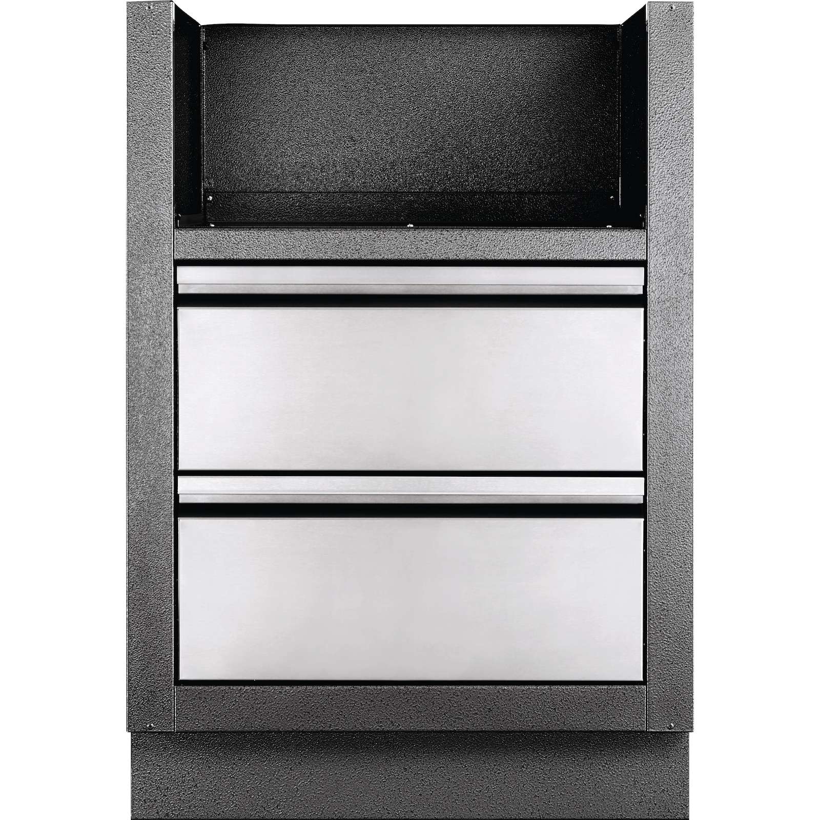 Dieser kohlefarbene, pulverbeschichtete, verzinkte Schrank zeichnet sich durch eine erhöhte Haltbarkeit aus, die durch die doppelschichtige Oberflächenbehandlung erreicht wird und ist speziell für den integrierten 46 cm Gas-Einbaugrillaufsatz der 700-Serie gedacht. Für die Aufbewahrung unter dem Grill sind zwei Edelstahlschubladen auf Gleitschienen montiert. Der Einbau ist kinderleicht mit Gas- und Elektro-Aussparungen. Nivellierfüße sorgen für eine gerade Oberfläche, auch wenn Ihre Terrasse nicht komplett eben ist. Verbinden Sie diesen Schrank mit dem integrierten 46 cm Gas-Einbaugrillaufsatz der 700-Serie und den perfekten OASIS Schränken für maßgeschneidertes Grillen im Freien.