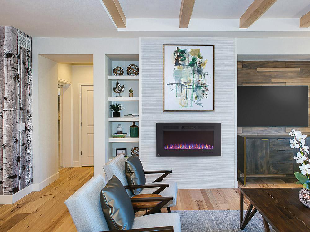 Mit einer Breite von 107 Zentimetern sorgt der Napoleon Premium Fire Elektrokamin ALLURE PHANTOM 42 in kleinen und mittelgroßen Räumen im Haus oder in der Wohnung für eine behagliche Atmosphäre. Er bringt eine gute Stimmung zum Beispiel in den Wohn- und Essbereich, in die Küche, in den Hobby- oder Arbeitsraum. Auch in einer Arztpraxis trägt er zu einer entspannten Wirkung auf Patienten bei. Eine besondere Ausstrahlung hat er in Restaurants oder Bars. Der Raum, in dem Sie den ALLURE PHANTOM 42 anbringen, sollte eine freie Wandfläche von 130 bis 170 Zentimetern haben. So wirkt er am besten.