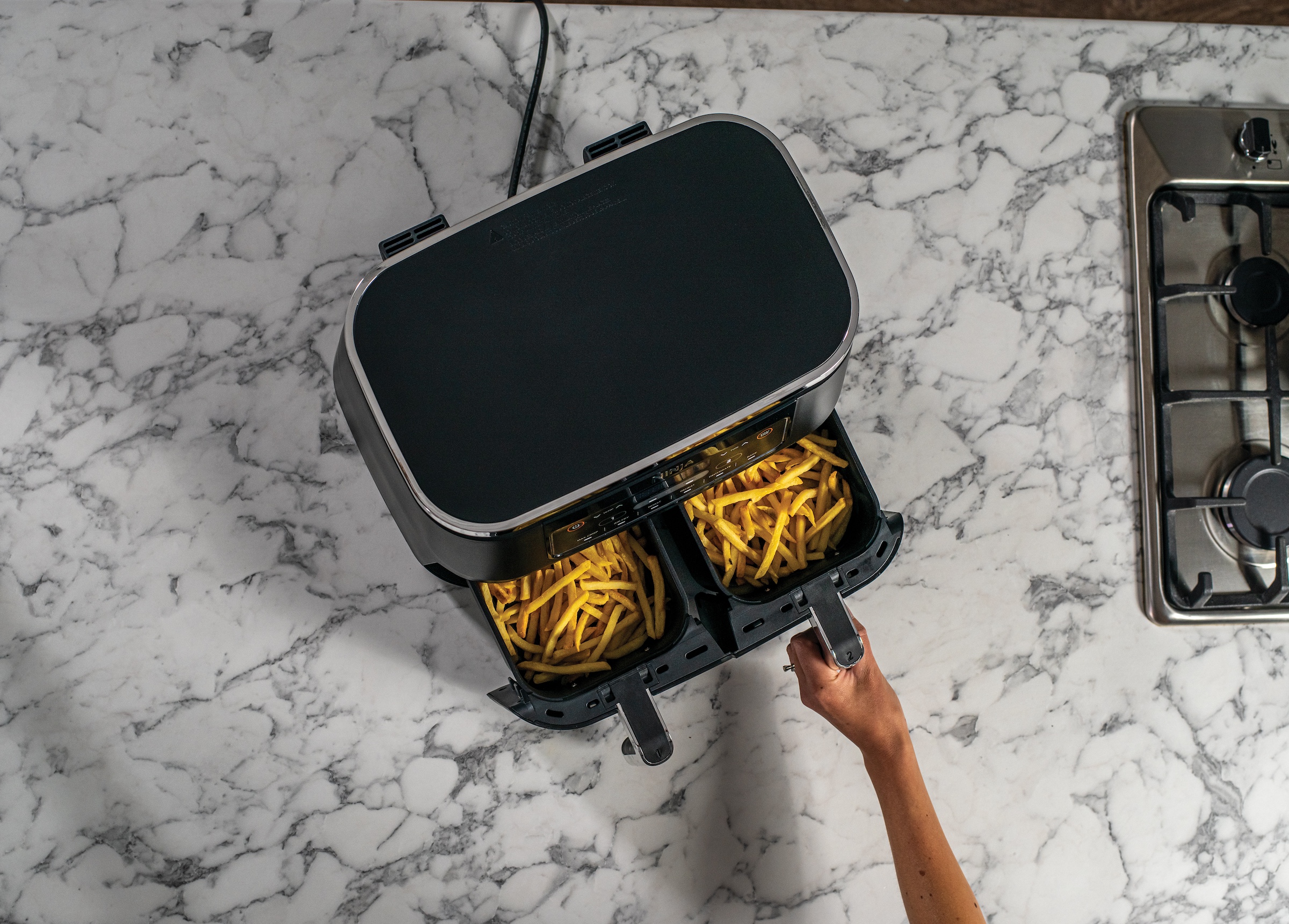 - Heißluftfritteuse mit zwei unabhängigen Garzonen