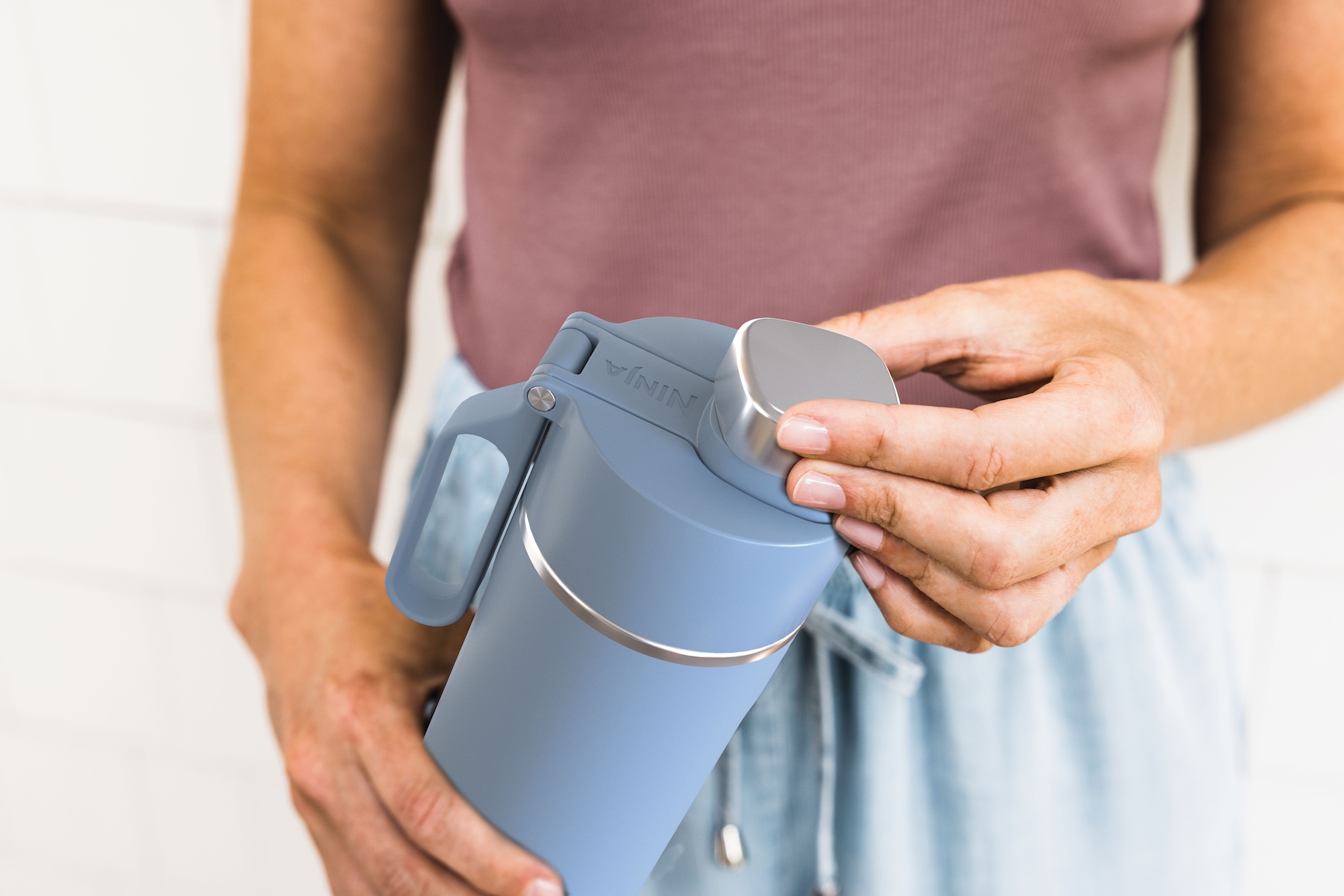 - Ninja Thirsti 700 ml große Reiseflasche mit auslaufsicherem Deckel in Blau