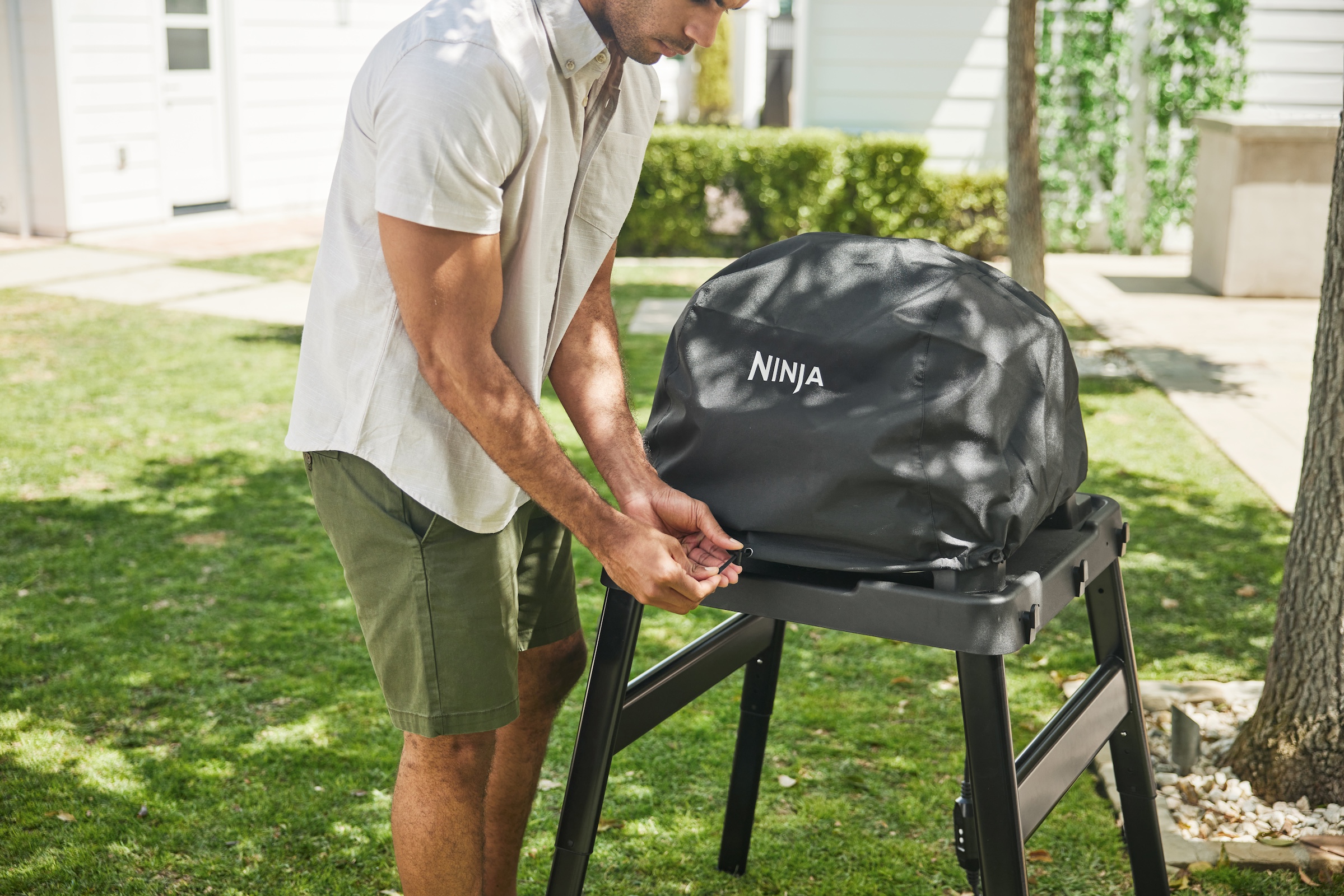 Der Ninja Woodfire XL Outdoor Grill ist zwar wetterfest und kann im Freien stehen bleiben, aber mit dieser strapazierfähigen Abdeckung können Sie dafür sorgen, dass er immer gut dasteht. Der ausbleichsichere Stoff (UV-Inhibitoren blockieren die Sonnenstrahlen) ist wasserfest und ein Kordelzug hält die Abdeckung fest an Ort und Stelle. Die Abdeckhaube ist kompatibel mit den Ninja Woodfire Pro XL Elektrogrills OG850EU und OG901EU.