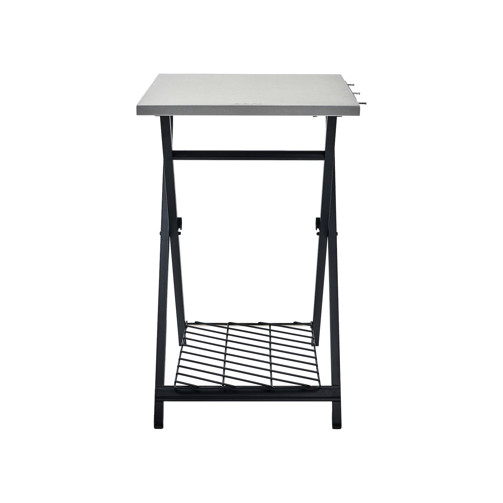 Dieser Klapptisch ist mit 12″ und 16″ Ooni Öfen kompatibel und verfügt über eine professionelle Arbeitsfläche aus Edelstahl, einen pulverbeschichteten Rahmen aus Karbonstahl, eine integrierte Ablage und einen Werkzeughalter mit Haken.