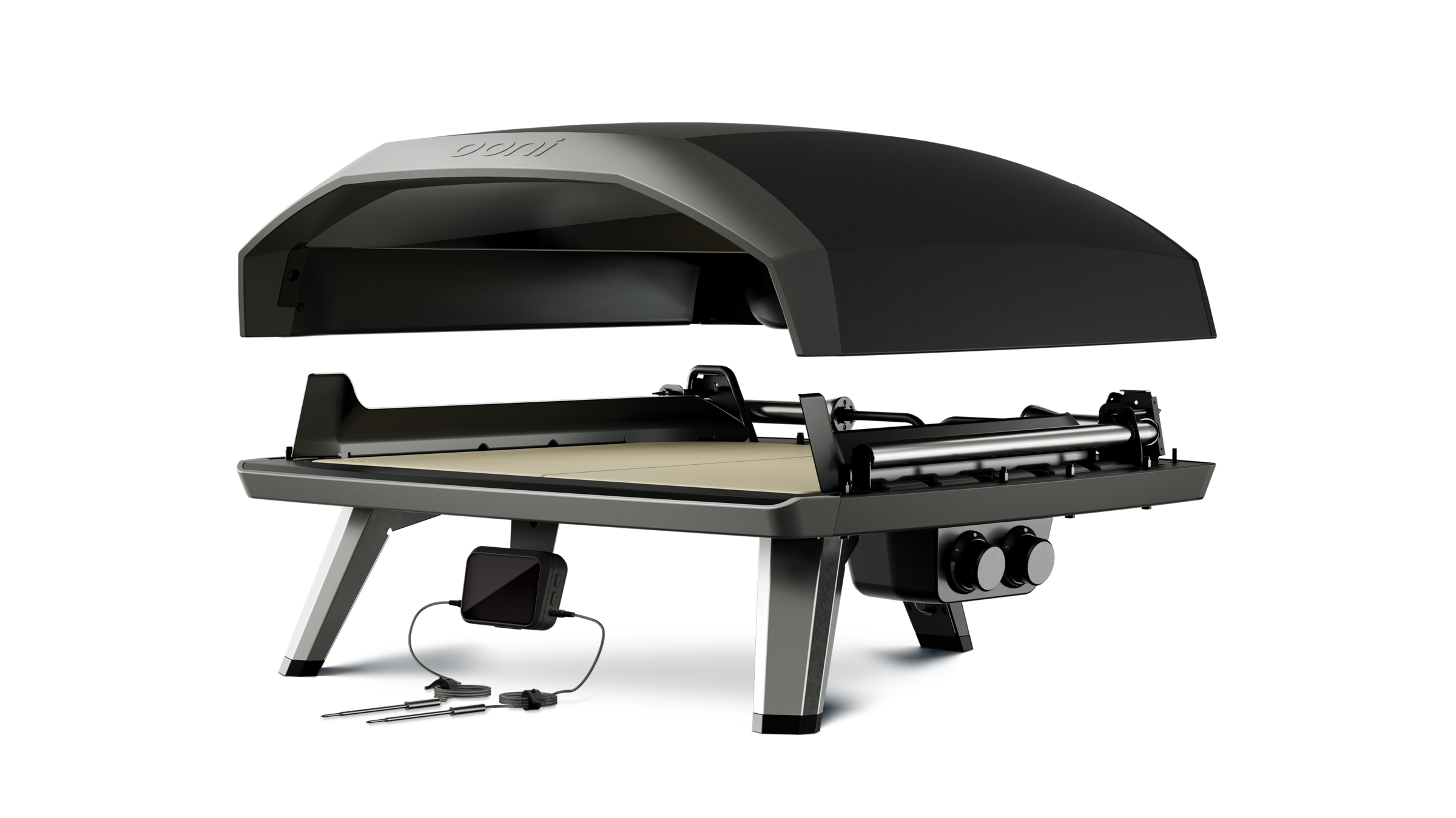 Außerdem verfügt er über ein brandneues, digitales Temperatur-Hub. Es liefert Messwerte von verschiedenen Stellen im Ofen, sodass Sie genau wissen, wann es Zeit zu backen oder zu kochen ist. Der Hub enthält außerdem zwei Temperatursensoren, mit denen Sie die Kerntemperatur von Fleisch messen können. Außerdem können Sie sich via Bluetooth mit dem digitalen Temperatur-Hub verbinden, um die Temperaturen zu überwachen, während Sie mit den Vorbereitungen beschäftigt sind.