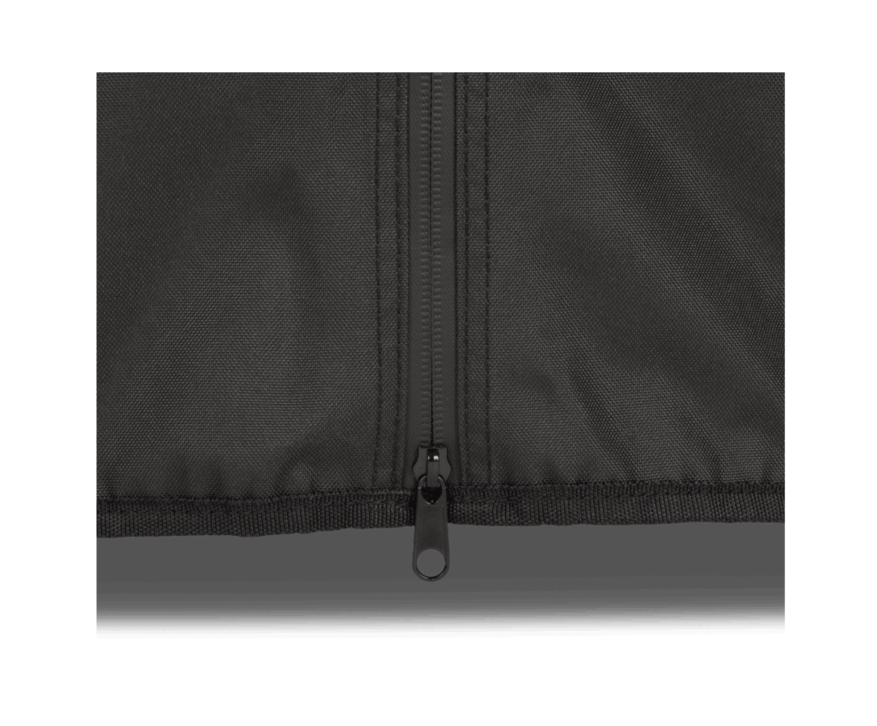 Dank dem durchgehenden Reißverschluss lässt sich die Haube problemlos auf- und abziehen und dann mit zwei Klettverschlüssen an der Rückseite festziehen. Weitere Klettverschlüsse werden direkt an den Beinen der Pyron Feuertonne befestigt und halten die Abdeckhaube auch bei windigem Wetter sicher an ihrem Platz.