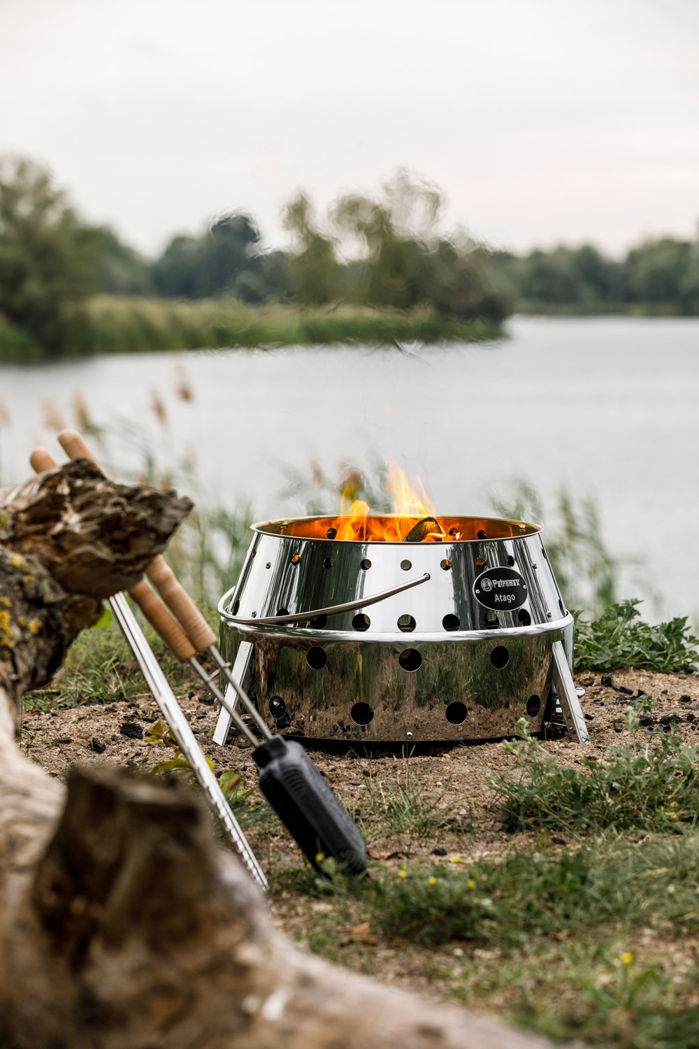 - Feuerschale: Die runde Form ermöglicht ein pyramidenförmiges Aufschichten von Feuerholz oder Reisig, sodass der Atago für ein gemütliches Lagerfeuer genutzt werden kann