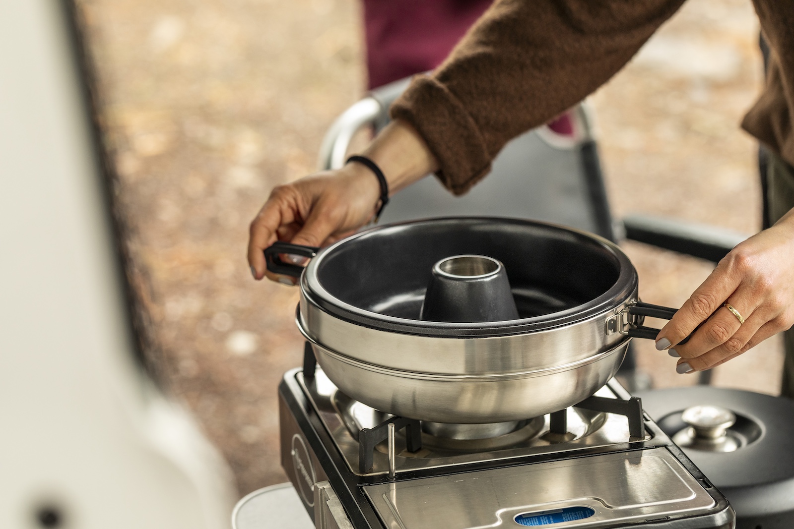Der Camping Backofen bietet eine einzigartige Funktion mit einer dreifachen Wärmeverteilung, die Ober-, Unter- und Seitenhitze umfasst. Die Wärme steigt von der Basis in die Auflaufform und wird durch die ausgeklügelte Wärmeverteilung und die doppelwandige Konstruktion gleichmäßig aus drei verschiedenen Richtungen auf die Speisen geleitet: von oben, unten und den Seiten. Im Deckel befinden sich Ventilationsöffnungen. Die Wärme zirkuliert effizient in der Ringform, wodurch eine Vielzahl von Backofengerichten perfekt gelingt.