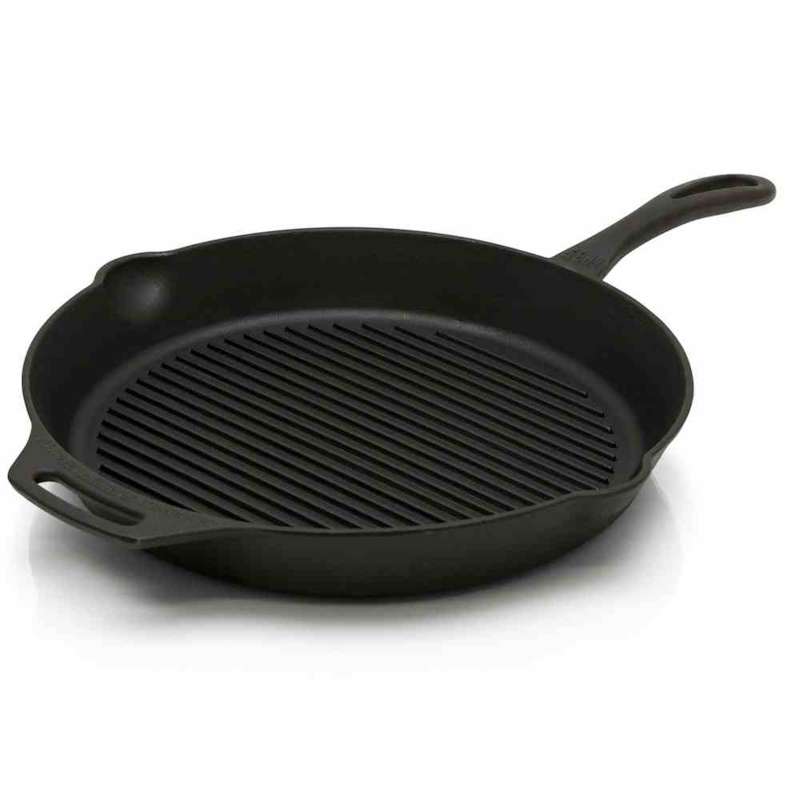 - Pfanne aus Gusseisen - natürliche Antihaftwirkung - Fassungsvermögen: 3,5 Liter - gerillter Pfannenboden für typisches Grillmuster