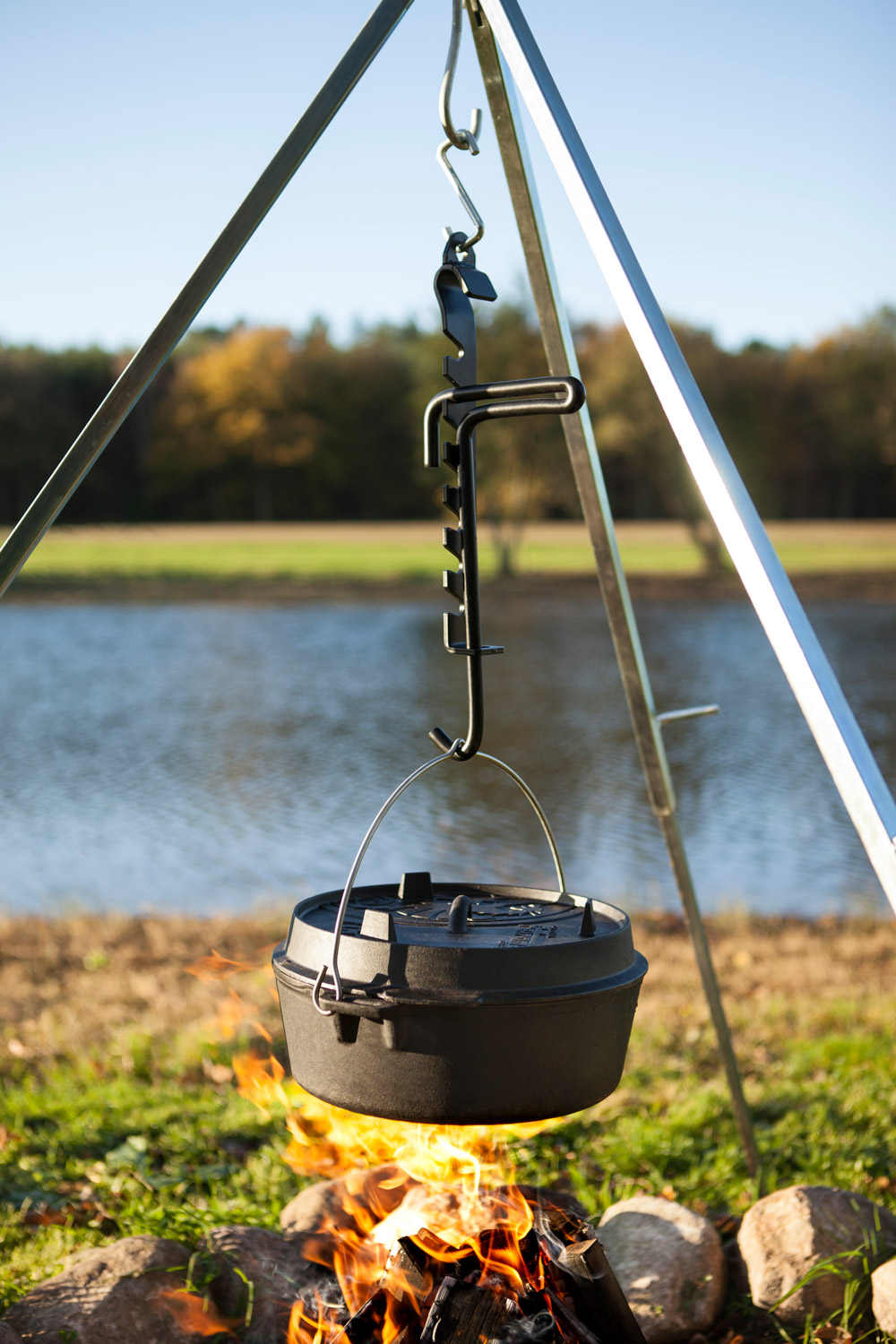 - Zum sicheren und einfachen Aufhängen von Töpfen und Dutch Oven über einer Feuerstelle