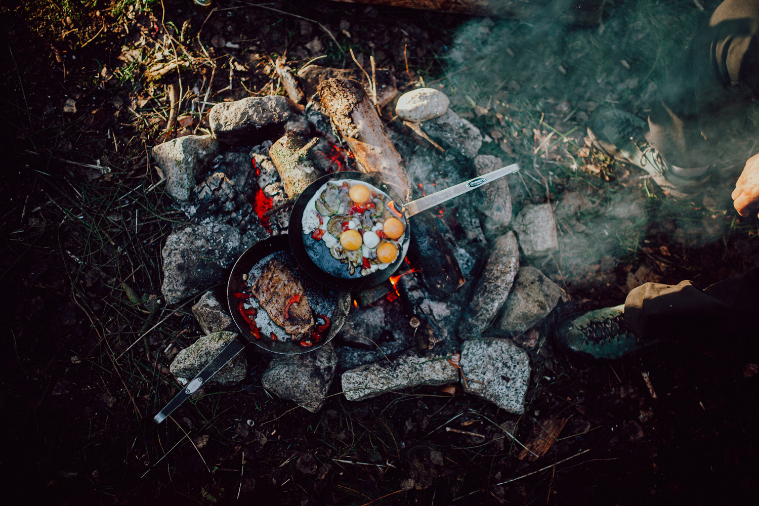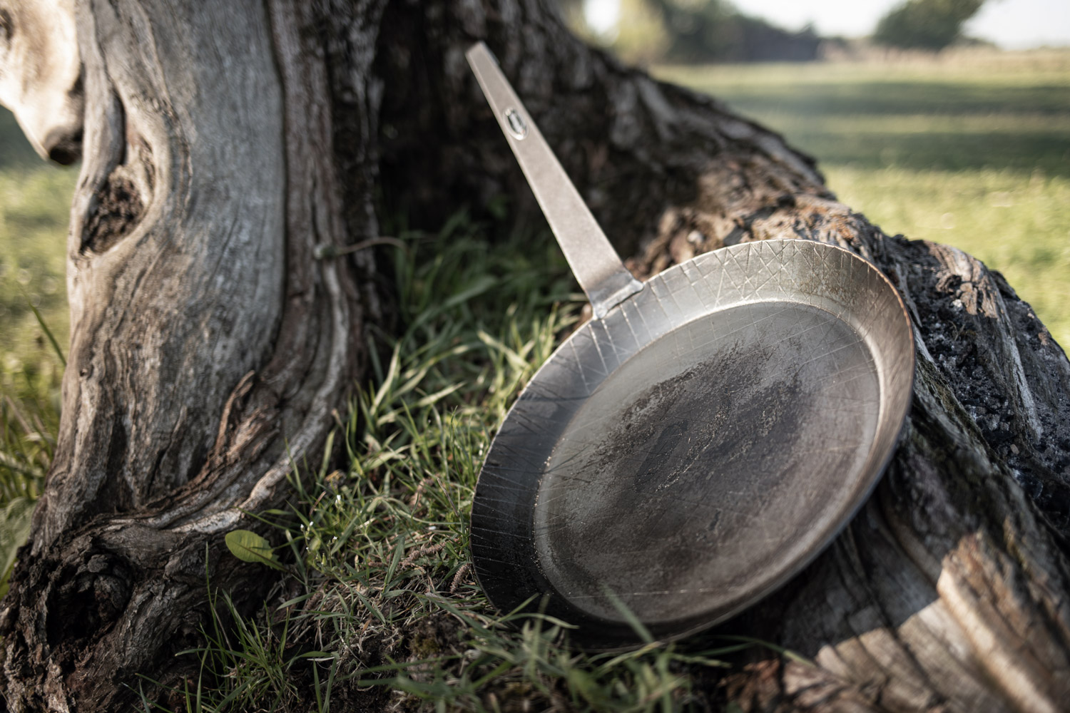 Der lange Griff mit Haken bietet zum einen ausreichend Abstand zur Hitzequelle, zum anderen lässt sich die Pfanne so problemlos am Rucksack einhängen und direkt mit ins Abenteuer befördern. Die schmiedeeiserne Pfanne ist für alle Herdarten und das offene Feuer geeignet.