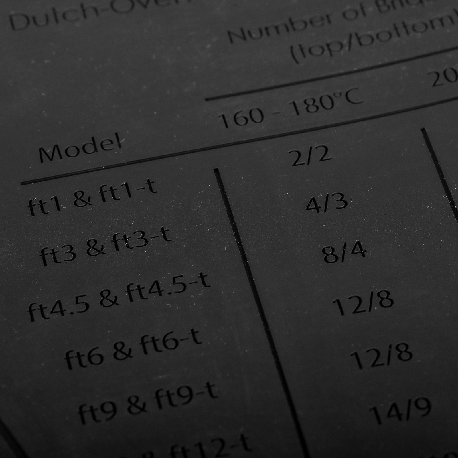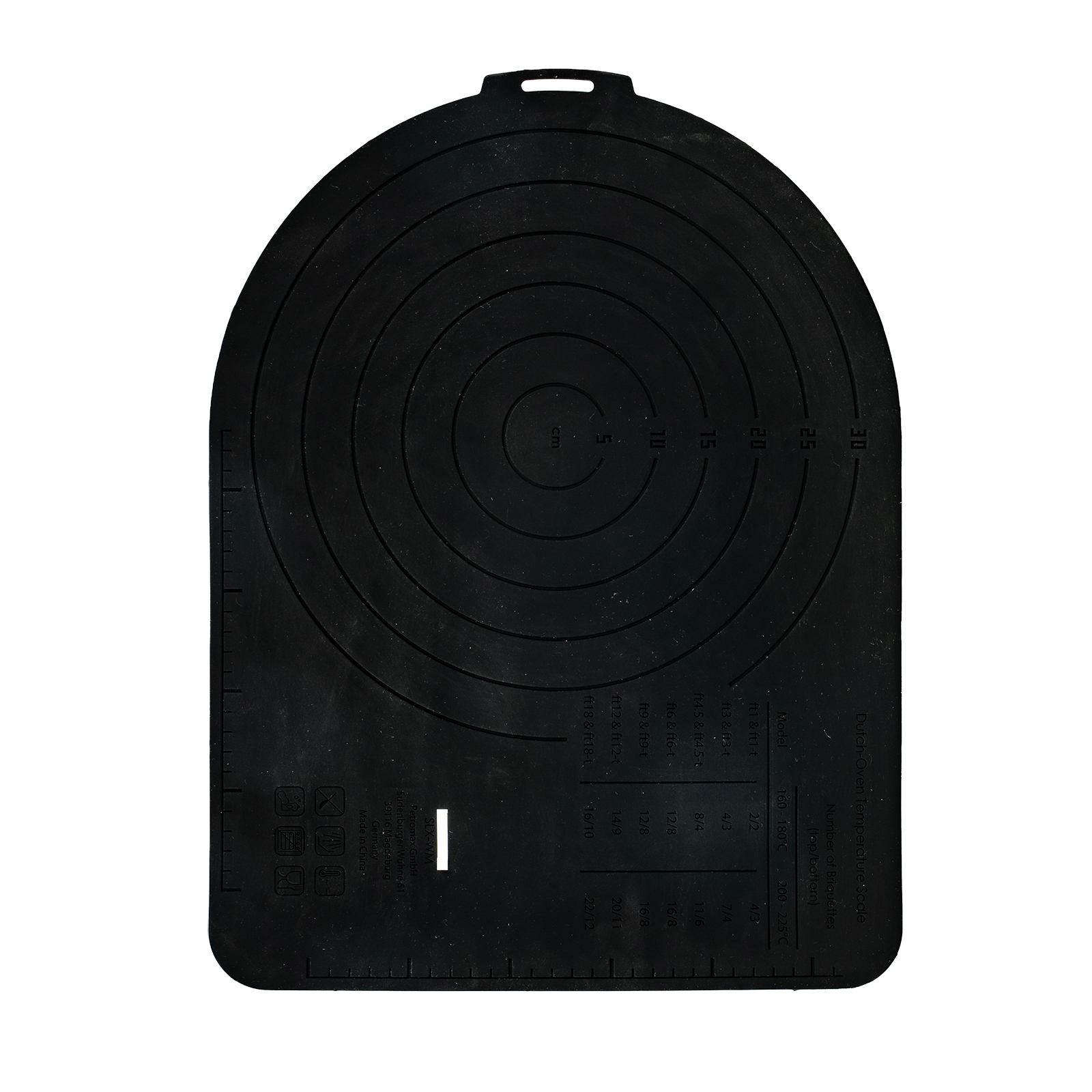 Dank ihrer robusten Konstruktion eignet sich diese Matte hervorragend für Feuertöpfe, sowohl mit als auch ohne Füße. Die auf der Rückseite integrierte Kreisschablone ermöglicht es, Teig mühelos und auf die perfekte Größe zu formen. Außerdem hilft die Brikett-Anzeige dabei, die optimale Hitze für Ihren Dutch Oven zu erreichen.