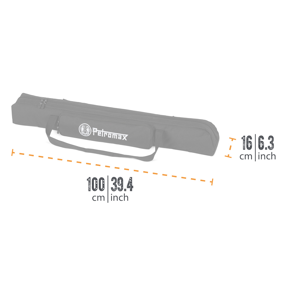 Mit der praktischen Transporttasche für das Petromax Dreibein sind sie für Ihr nächstes Outdoor-Abenteuer perfekt gerüstet. Einfach das Dreibein-Gestell platzsparend in der Tasche verstauen und schon kann es losgehen, denn mit der stabilen Tragetasche lässt sich die Outdoor-Kochstelle komfortabel und sicher transportieren.