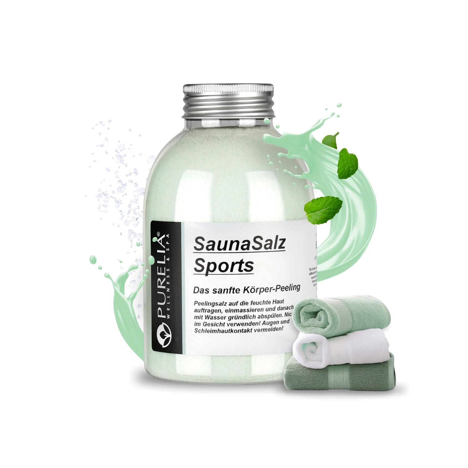 - Das Salz auf die feuchte Haut auftragen, einmassieren und anschließend abduschen