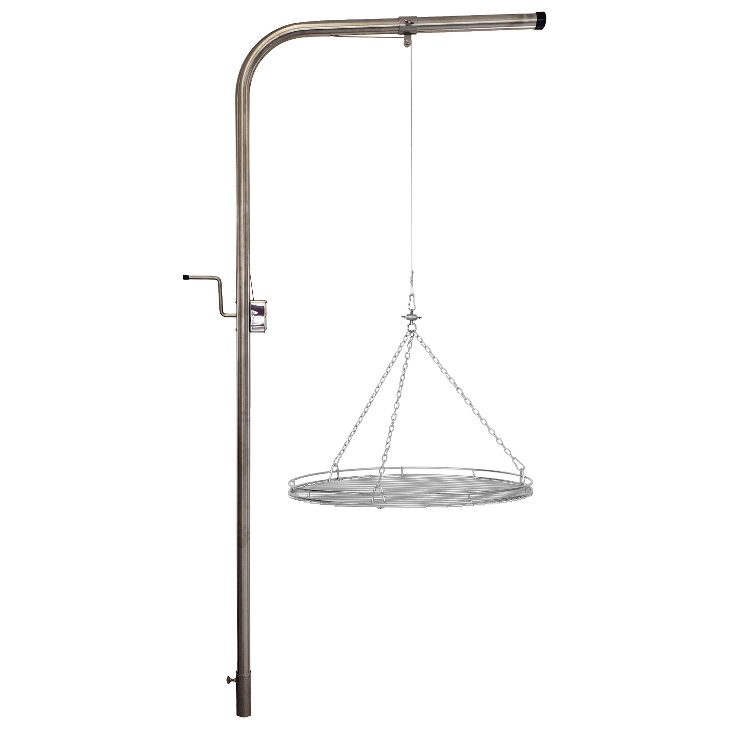 - mit Bodenhülse zum Einbetonieren des Grillgalgens, Galgenrohr, Seilwirbel und Grillkurbel zur Höhenverstellung des Grillrostes