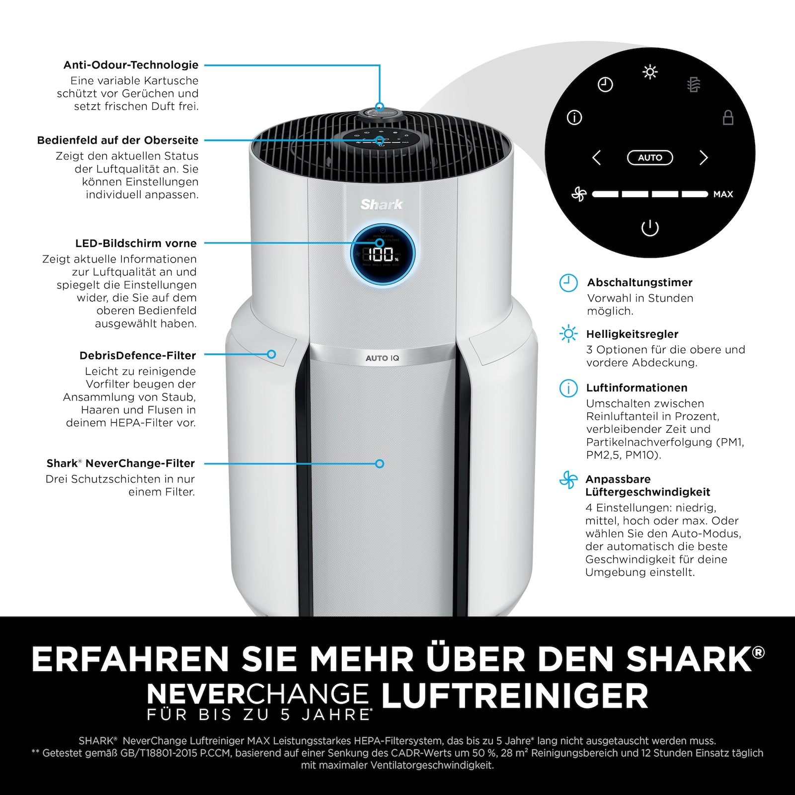 Produktinformationen "Shark NeverChange Luftreiniger Max mit NeverChange Filtersystem HP300EU"
