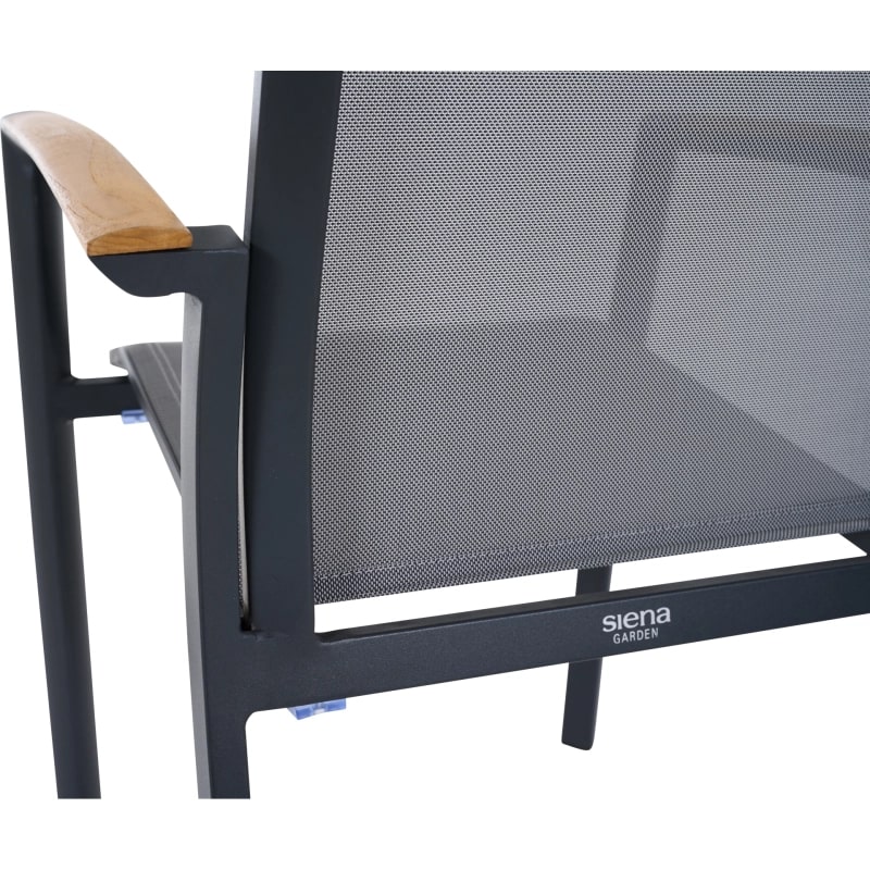 1x Siena Garden Stapelsessel Velia, Alu, RANOTEX® schwarz-grau, Teak FSC 100% T59632