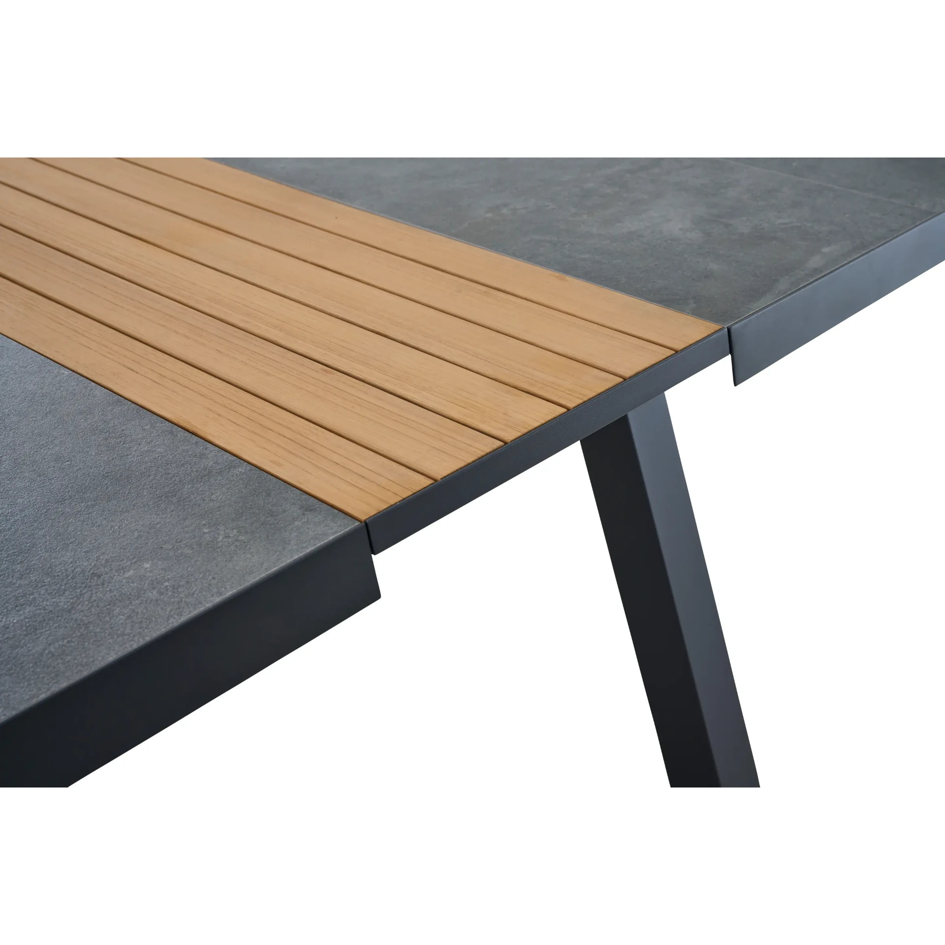 - Tischplatte aus Keramik in anthrazit, mit einem Inlay aus Teakholz FSC® 100% in natur