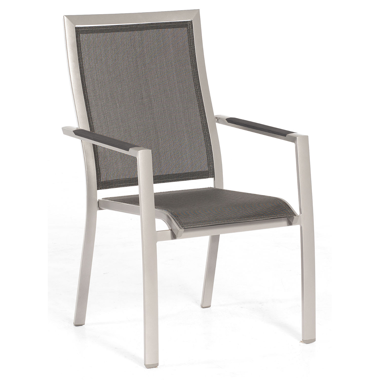 1x Sonnenpartner Sitzgruppe bestehend aus 2x Klappsessel Star silber, 4x Stapelstuhl Star silber und 1x Tisch Base 160x90 cm mit HPL-Tischplatte in beton-dunkel