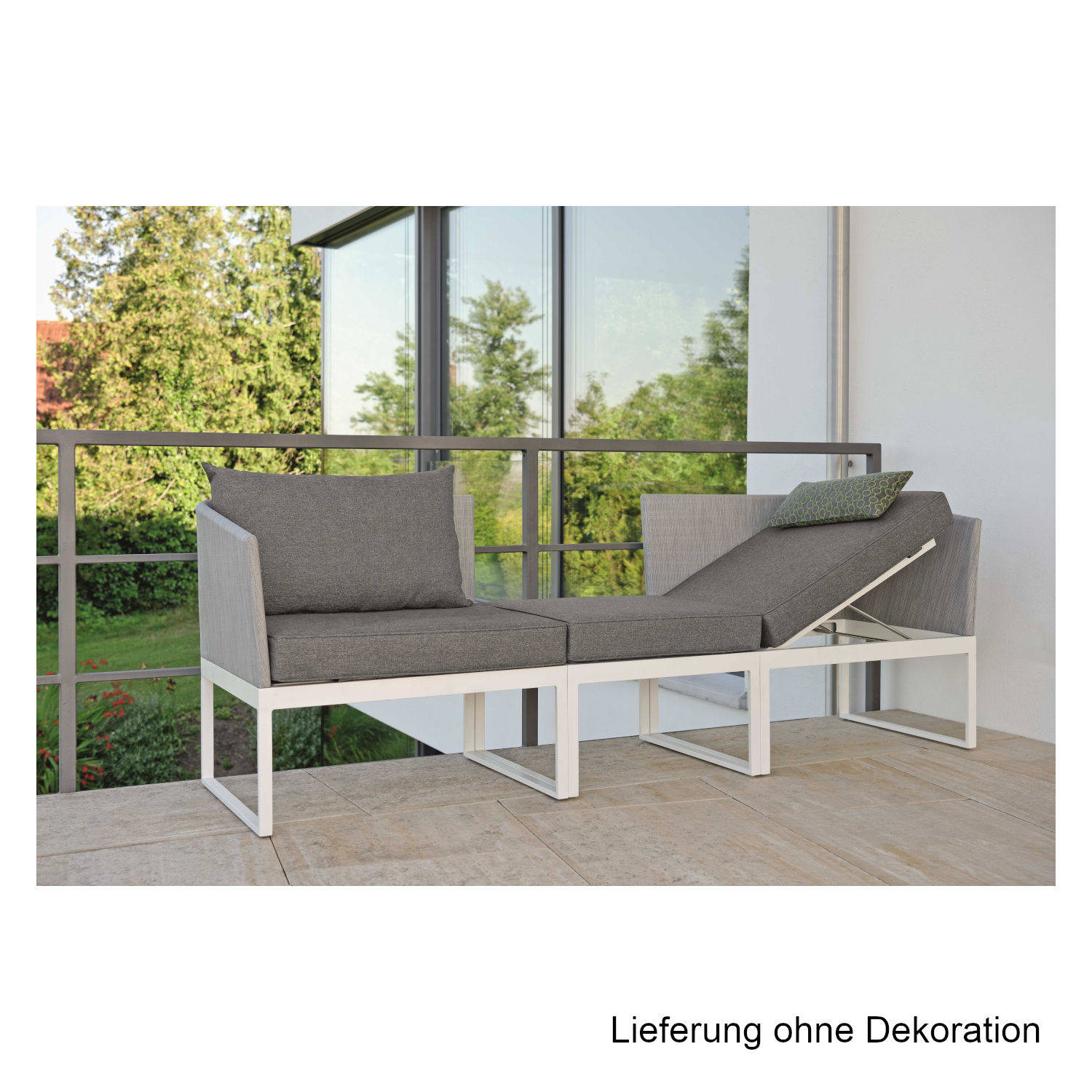 Eigenschaften "Stern 3-teilige City-Lounge Donna Aluminium weiß/Textilen silber 228x63x78 cm Balkonset Sitzgruppe"
