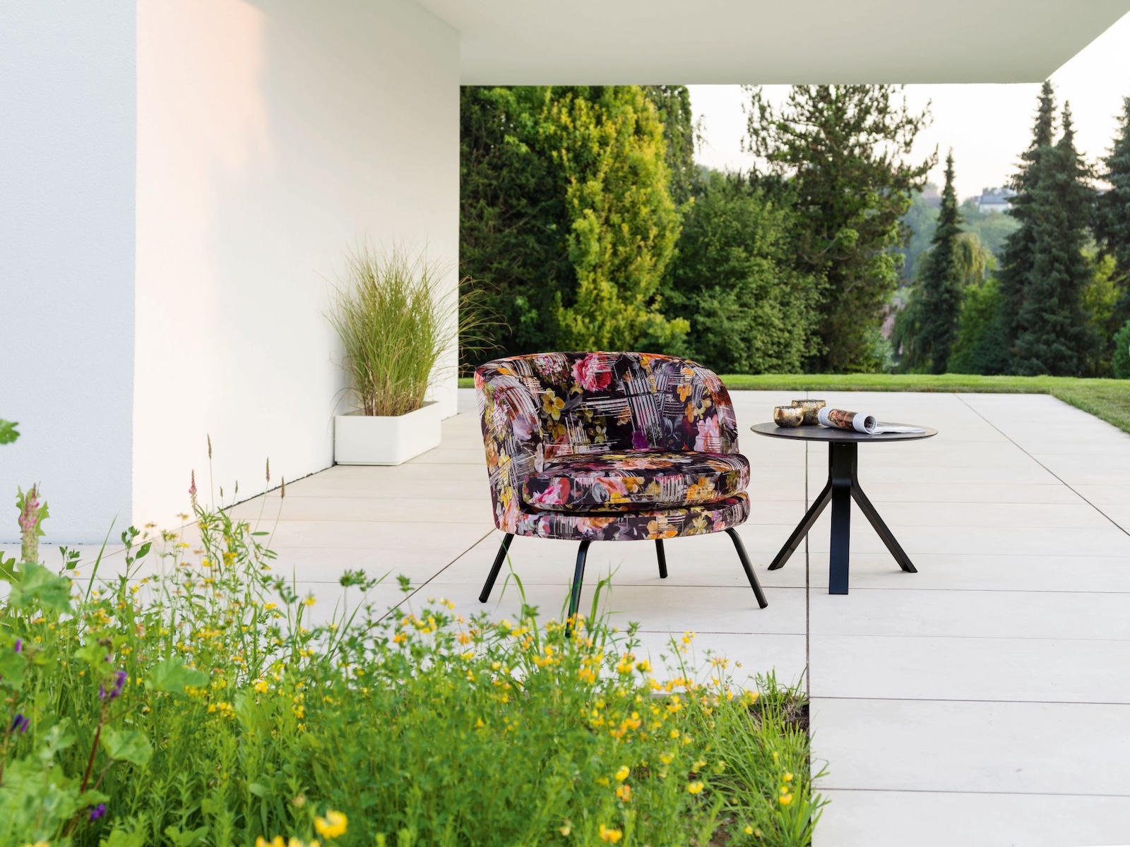 Der Stern Leni Lounge-Sessel besticht durch elegantes Design und hohen Sitzkomfort für Garten, Terrasse oder Balkon. Das stabile Aluminiumgestell in Schwarz matt sorgt für Langlebigkeit, während der Bezug aus 53 % Polyester und 47 % Viskose im Flower-Dessin ein stilvolles, florales Highlight setzt. Ideal zum Entspannen und Relaxen im Freien.