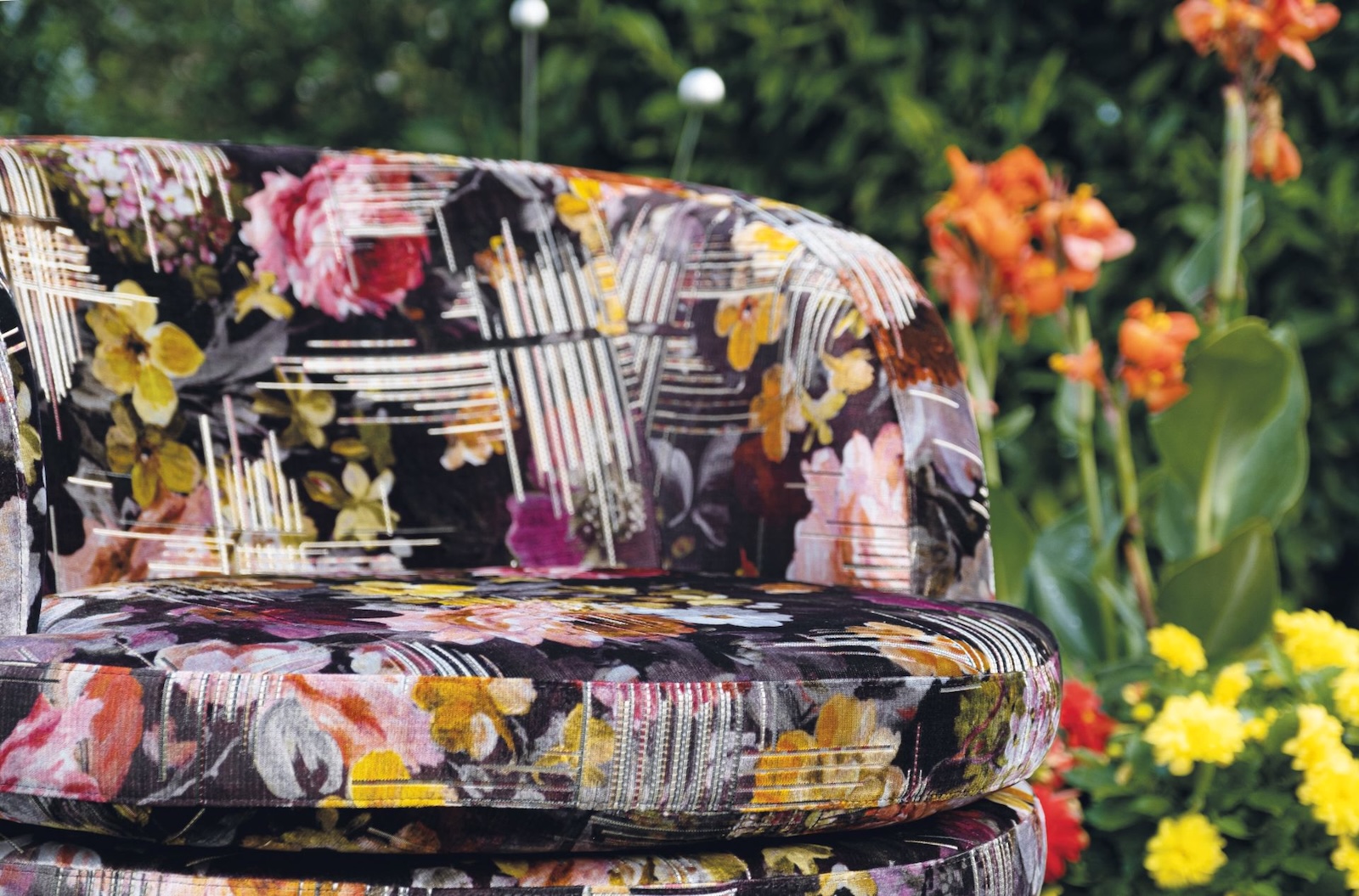- Bezug Flower aus 53 % Polyester / 47 % Viskose – abziehbar und waschbar bei 30 °C Feinwäsche